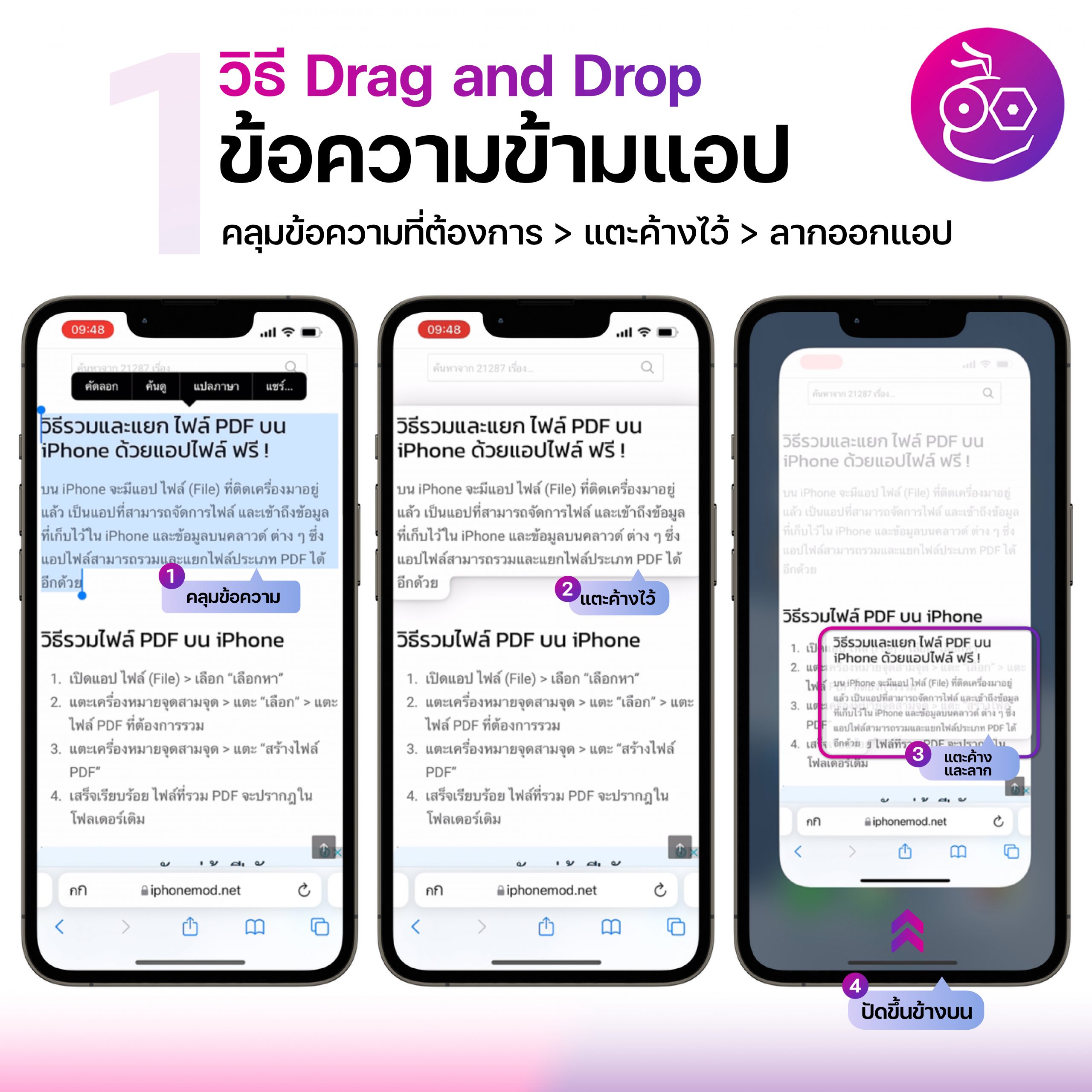 วิธี Drag and Drop (ลากและวาง) ข้อความและรูปภาพข้ามแอปบน iPhone