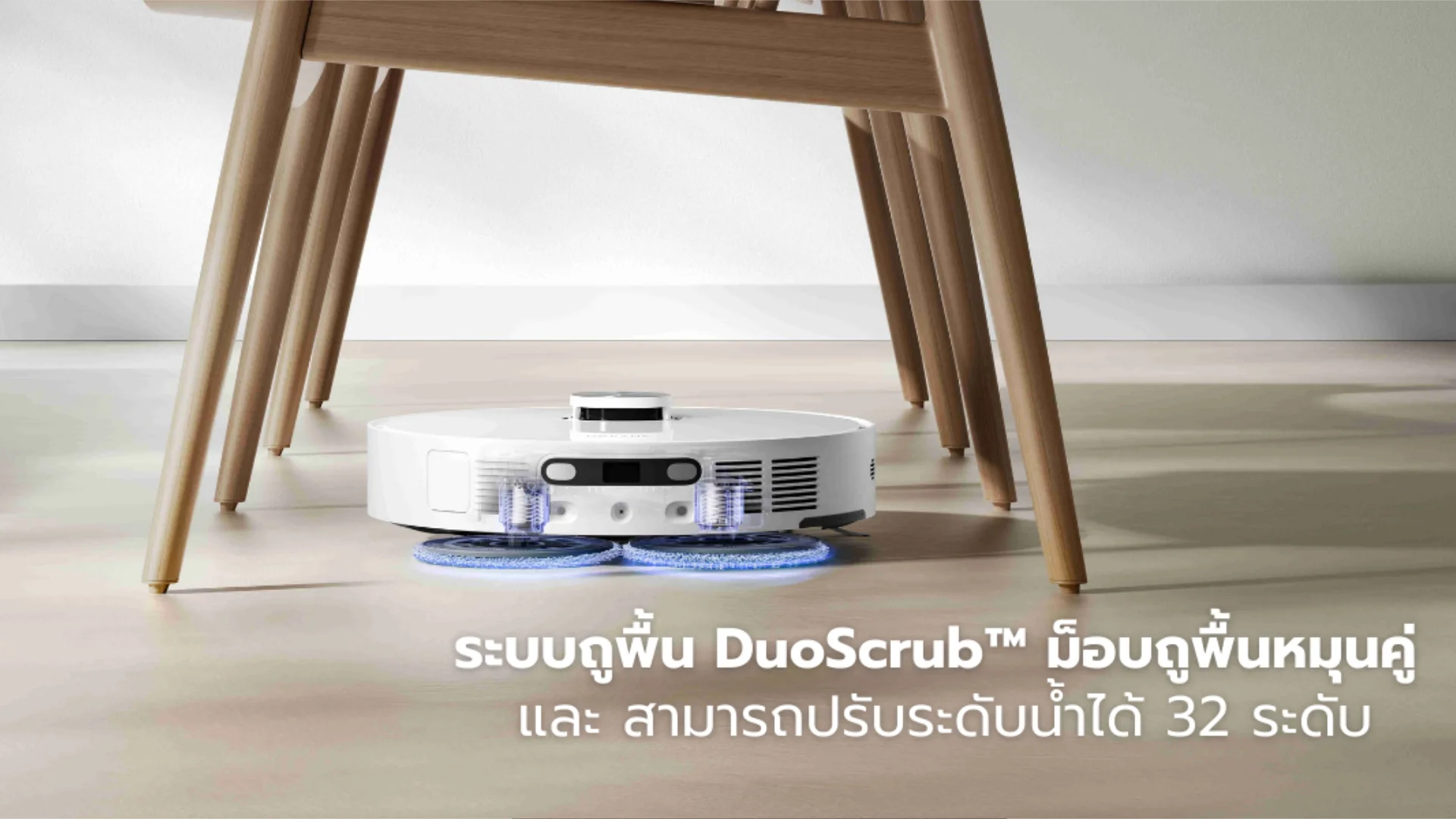 ระบบถูพื้น DuoScrub™ ม็อบถูพื้นหมุนคู่ และสามารถปรับระดับน้ำได้ 32 ระดับ หมดกังวลการเกิดคราบน้ำจากม็อบทำให้การใช้งานสะดวกมากยิ่งขึ้น