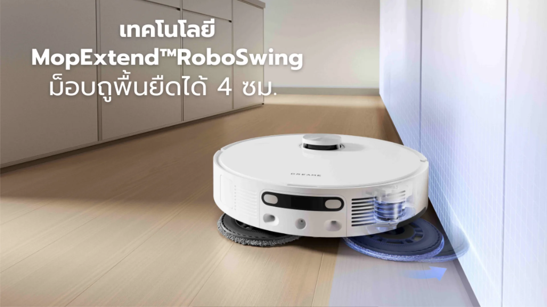 เทคโนโลยี MopExtend™RoboSwing ที่อัพเกรดให้ดีขึ้นต่อการทำความสะอาดที่ล้ำลึกทุกซอกมุมด้วยการออกแบบให้ม็อบถูพื้นยืดออก สามารถเอียงขยับเพื่อการเข้าถึงซอกมุมได้ลึกขึ้นถึง 4 ซม สามารถทำความสะอาดได้ตามบริเวณขอบผนัง รอบขาโต๊ะ ขาเก้าอี้ หรือใต้เฟอร์นิเจอร์ได้เป็นอย่างดี