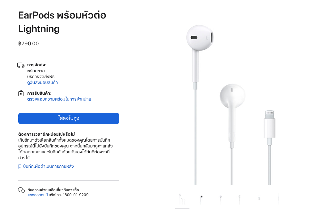 สำหรับ EarPods ของ Apple นั้นเริ่มแรกจะเป็นสายแบบ 3.5 มม., เปลี่ยนมาเป็น Lightning ตอนเปิดตัว iPhone 7 โดย EarPods ของ Apple นั้นขายในราคา 790 บาท ซึ่งข้อดีของหูฟังมีสาย คือ เสียบฟังได้เลย ไม่ต้องชาร์จแบต แต่หูฟังมีสายก็ได้รับความนิยมน้อยลง และไม่มีแถมมาในกล่อง iPhone แล้ว