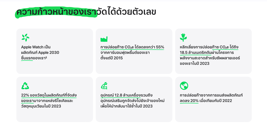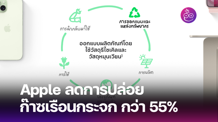 - การลดการปล่อยก๊าซเรือนกระจก Apple ลดการปล่อยก๊าซเรือนกระจกโดยรวมลงมากกว่า 55% นับตั้งแต่ปี 2015