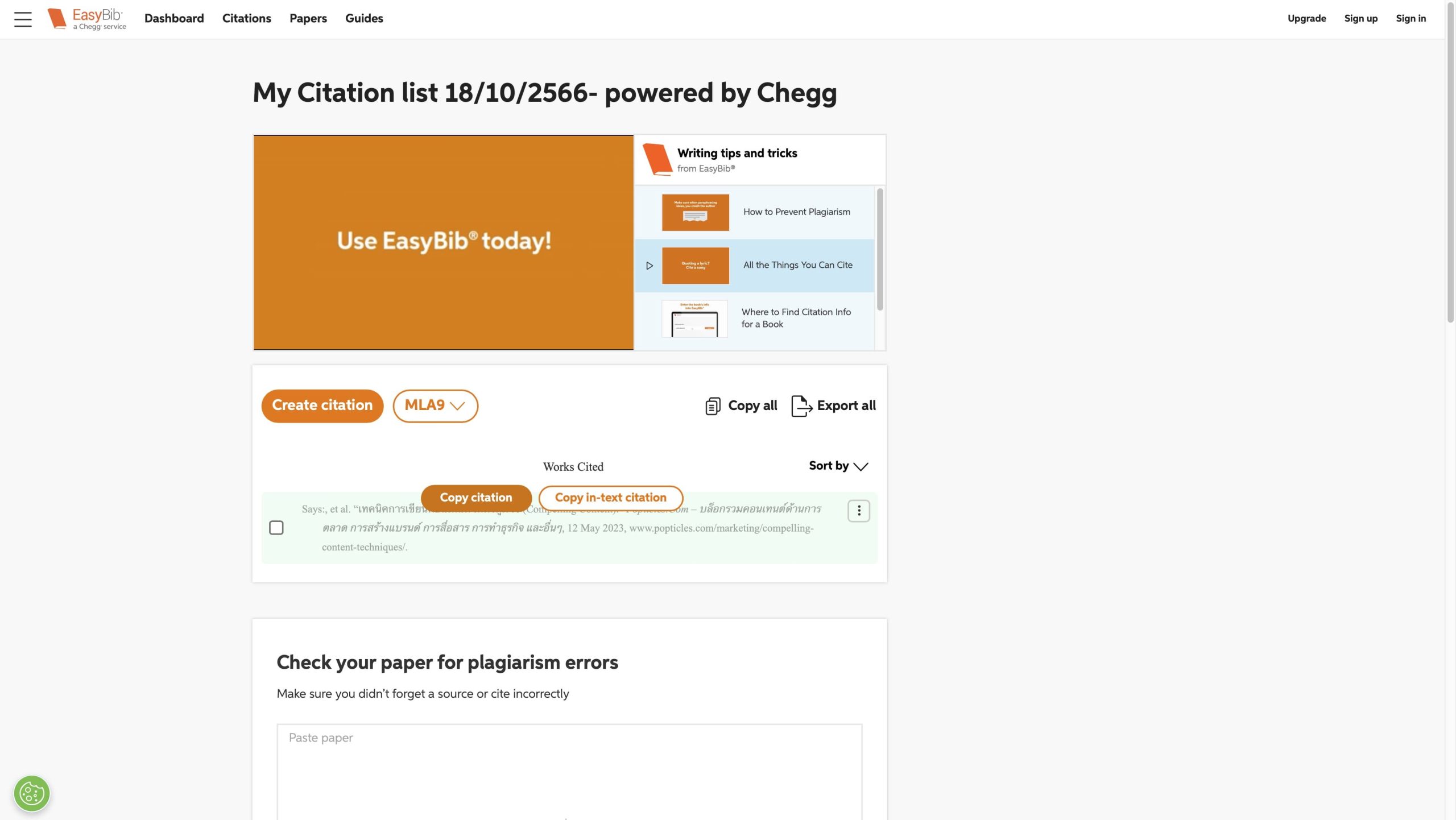 EasyBib เว็บช่วยเขียนอ้างอิง เหมาะกับคนขี้เกียจ!