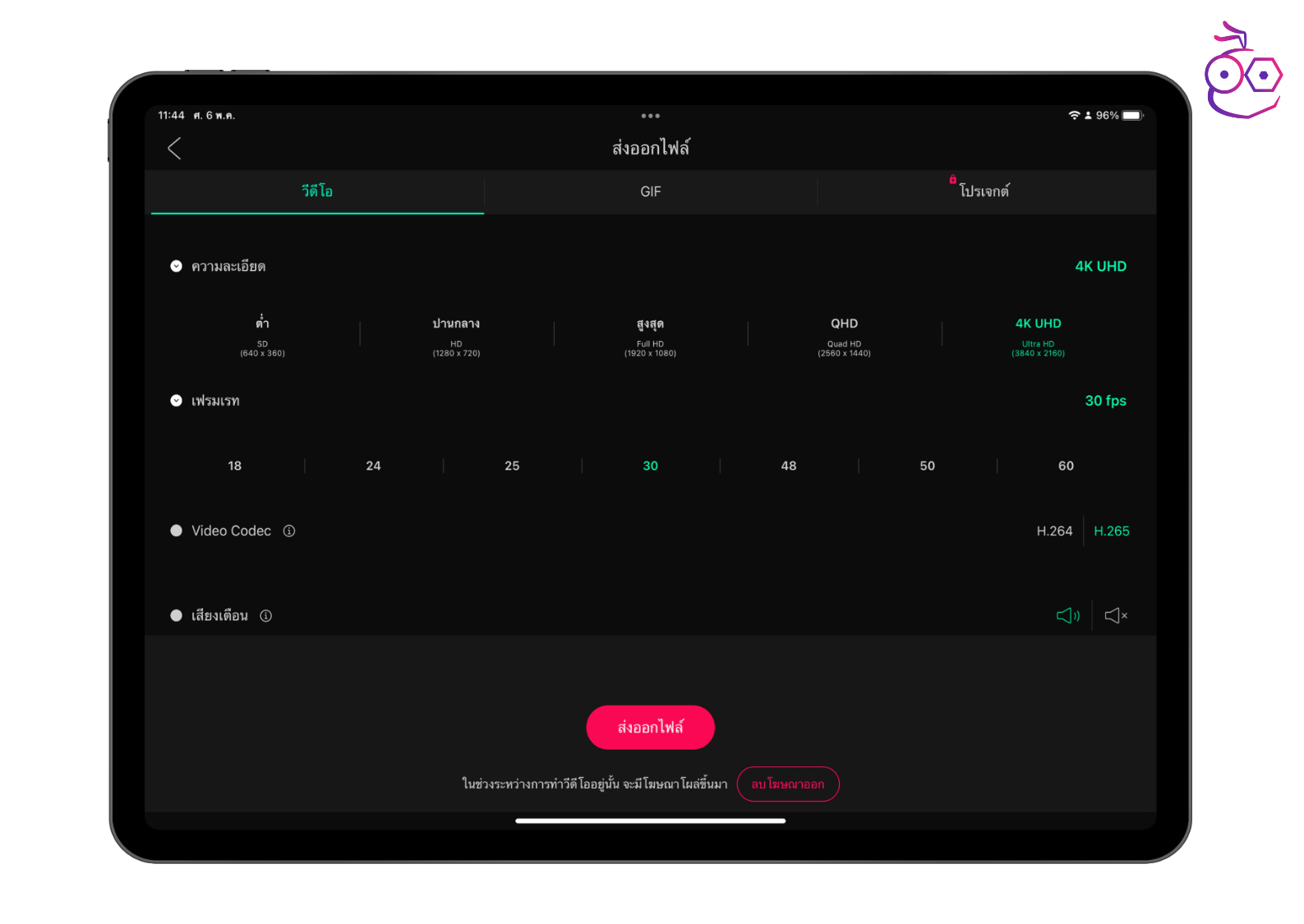 แต่แอปนี้เป็นแอปที่ติดลายน้ำ ต้องกดเข้าไปดูโฆษณาถึงจะลบลายน้ำให้ หรือจะกดซื้อเพื่อลบลายน้ำถาวรก็สามารถทำได้เหมือนกัน สามารถเลือก crop ไซส์วิดีโอตามแพลตฟอร์มที่เราต้องการลงคลิปได้ ตอนกดบันทึกวิดีโอก็สามารถเลือกความละเอียดวิดีโอ เลือกเฟรมเรท หรือสกุลไฟล์ของวิดีโอได้ด้วย สะดวกมาก ๆ