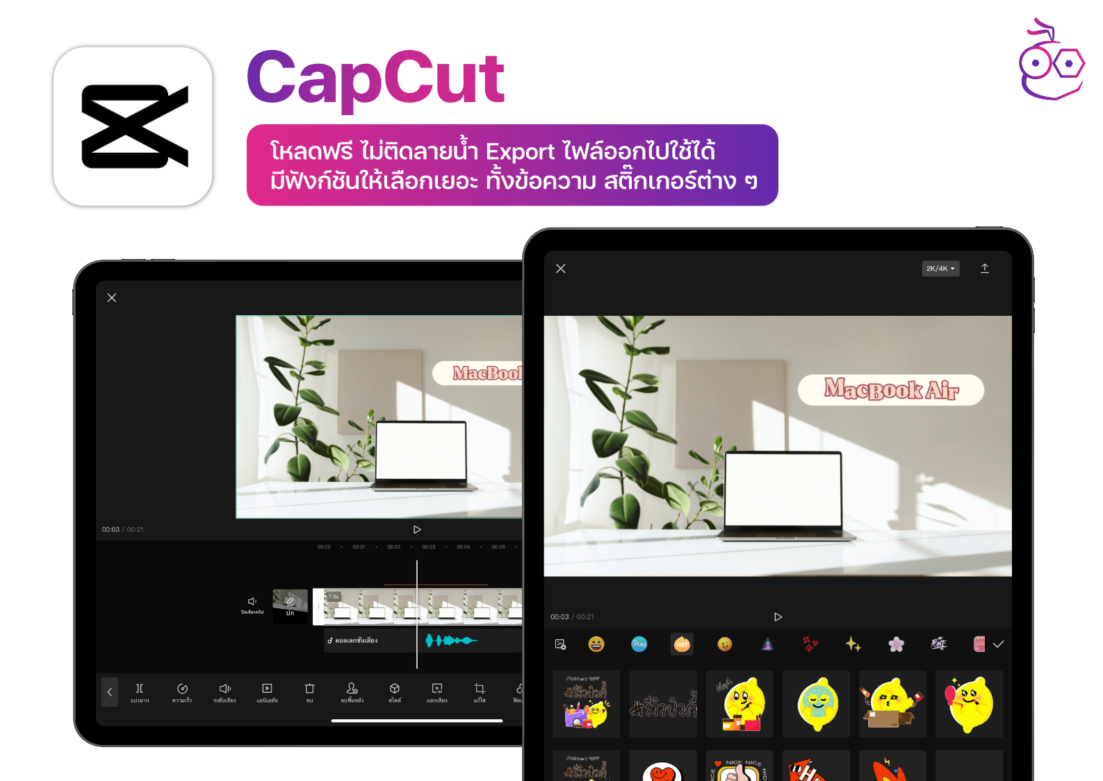 แอปตัดต่อยอดนิยม ที่หลาย ๆ คนอาจจะรู้จักกันอยู่แล้ว เป็นแอปโหลดฟรี ไม่ติดลายน้ำ สามารถ Export ไฟล์ออกไปใช้ได้เลย มีฟังก์ชันให้เลือกใช้มากมายสำหรับการตัดต่อวิดีโอ ทั้งรูปแบบข้อความ สติ๊กเกอร์ต่าง ๆ และยังมีเพลงติดแอปมาให้เลือกใช้เยอะมากอีกด้วย เรียกได้ว่าคุ้มมาก ๆ สำหรับการตัดต่อวิดีโอในแอปนี้ อย่าลืมไปลองเล่นกันดูนะ