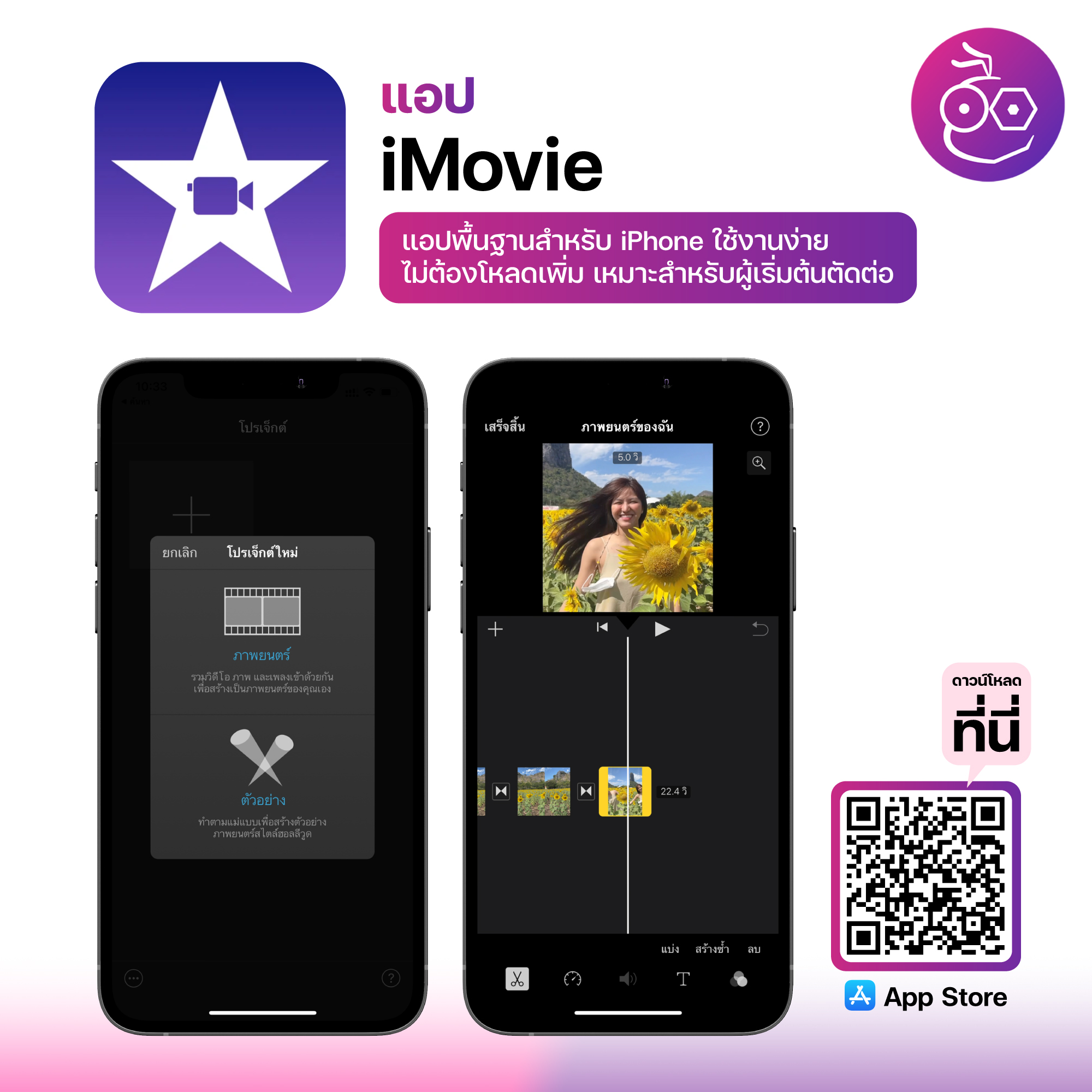แอปตัดต่อพื้นฐาน ที่ติดมากับ iPhone ทุกเครื่อง ไม่ต้องไปโหลดแอปเสริม ไม่ต้องเสียเงิน อยากเริ่มต้นตัดคลิปง่าย ๆ แนะนำแอปนี้เลย มือใหม่ก็ทำได้ เครื่องมือน้อยไม่ซับซ้อน แต่จะไม่มีลูกเล่นเยอะ จะทำได้แค่ตัดต่อ ใส่เพลง ข้อความ และ transition พื้นฐานง่าย ๆ เท่านั้น