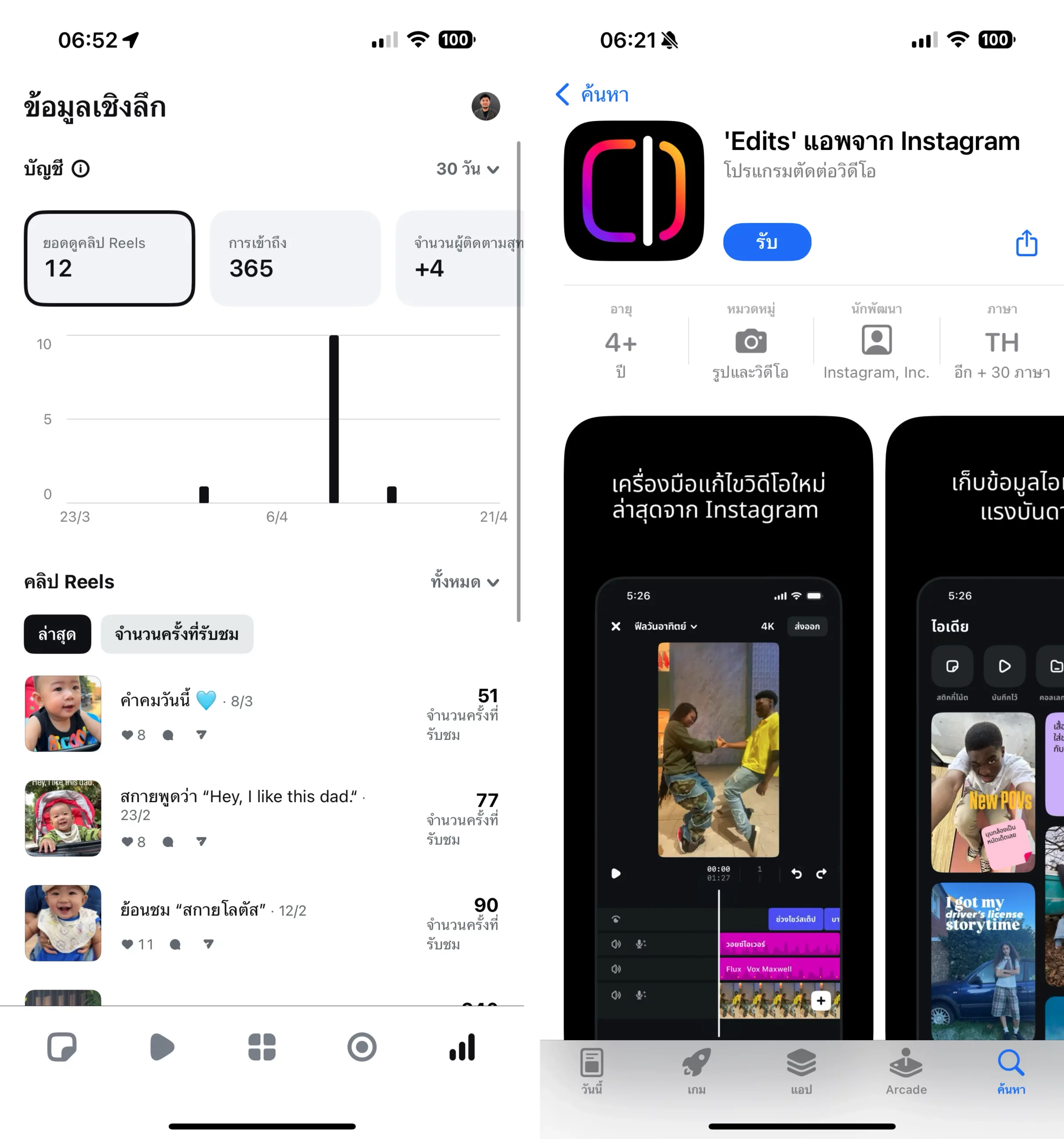 Instagram ได้เปิดให้ดาวน์โหลด Edits แอปตัดต่อวิดีโอของ Instagram ที่สามารถตัดต่อวิดีโอ Reels, คลิปสั้น เอาแชร์ทั้งใน Instagram หรือแอปอื่นก็ได้