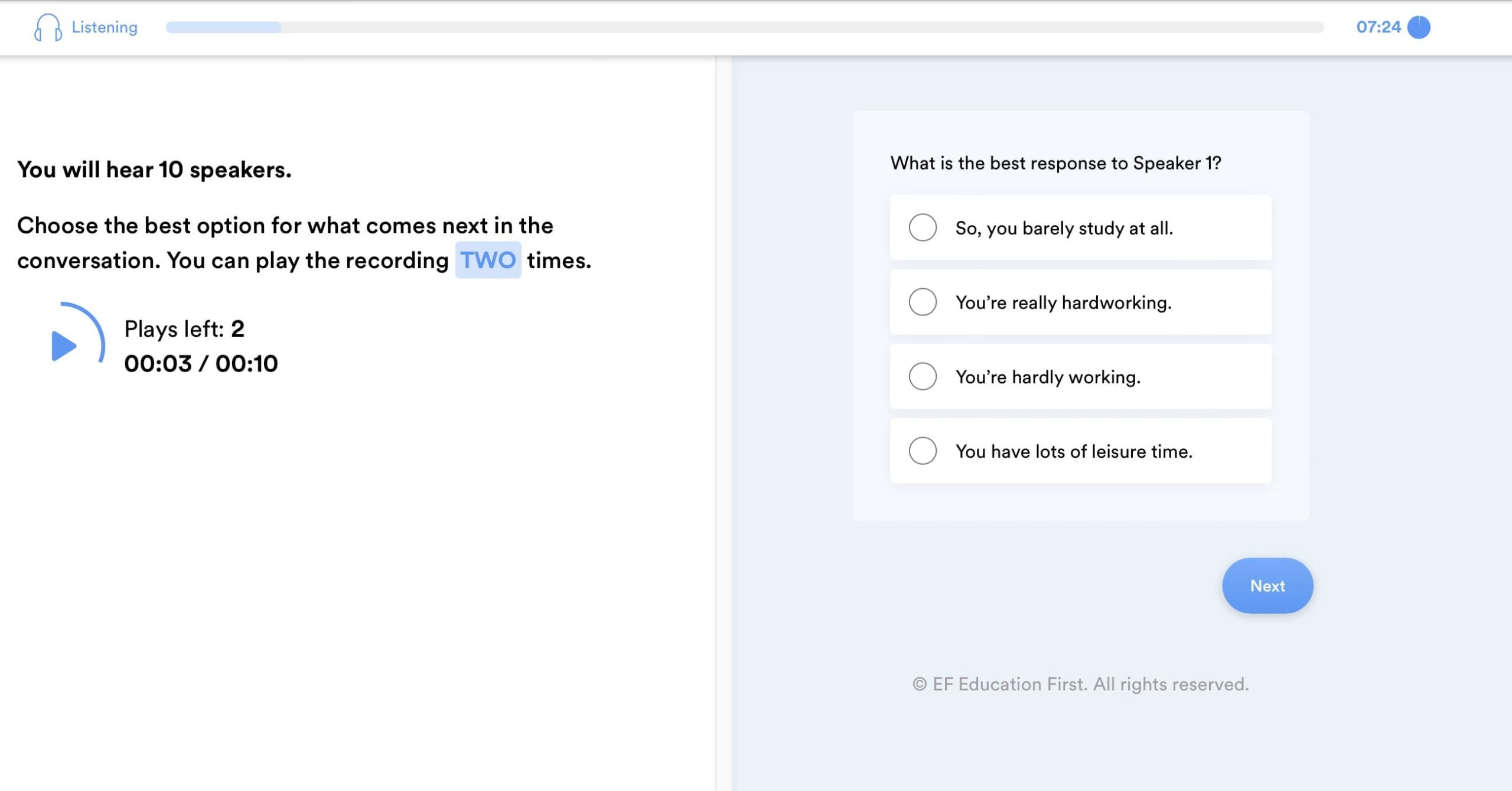 ก่อนลองทำข้อสอบอย่าลืมตั้งสติ และต้องเตรียมหูฟังไว้ด้วย เพราะข้อสอบมีพาร์ทฟังด้วย