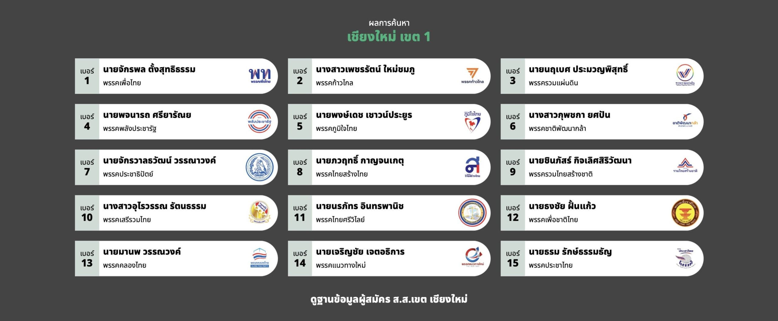กดที่ชื่อของพรรคนั้น ๆ เพื่อดูข้อมูล