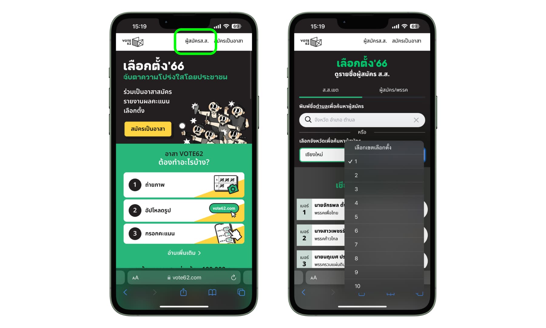 📌ให้เข้าไปที่เว็บไซต์ : vote62.com (ดูได้ทั้งบนสมาร์ตโฟนและคอมพิวเตอร์)