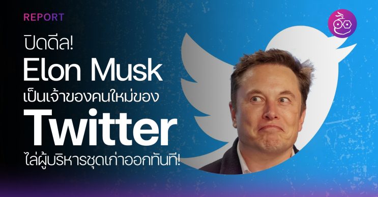 Elon Musk เข้าซื้อและเป็นเจ้าของ Twitter คนใหม่อย่างเป็นทางการ ด้วยการเข้าซื้อที่ราคา 54.20 ดอลลาร์ต่อหุ้น คิดเป็นเงินประมาณ 44 พันล้านดอลลาร์ (1.6 ล้านล้านบาท) พร้อมไล่ผู้บริหารตัวเป้งออกทันที!