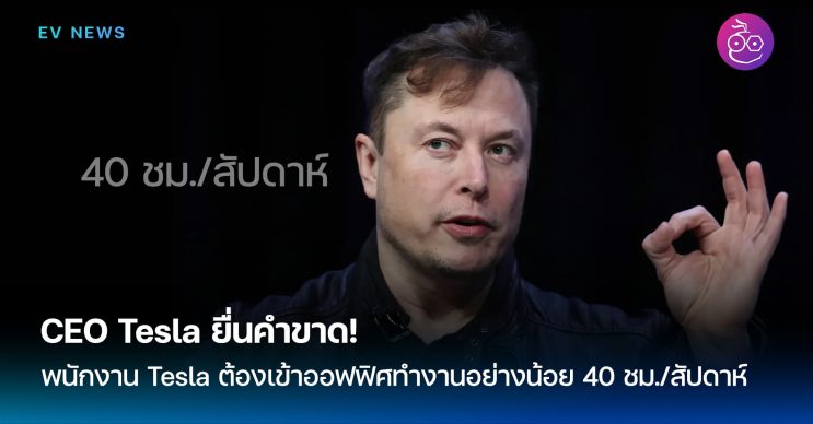 CEO Tesla ยื่นคำขาด! พนักงาน Tesla ต้องเข้าออฟฟิศทำงานอย่างน้อย 40 ชม./สัปดาห์