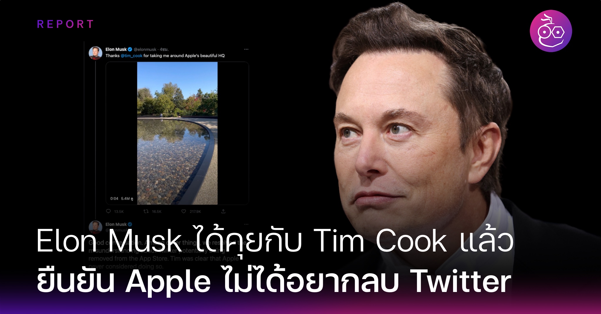 หลังจากนั้น Elon Musk ก็ได้เข้าไปพบกับ Tim Cook ที่ Apple Park พร้อมระบุว่าได้ทำความเข้าใจกับ Apple แล้วว่าจริง ๆ แล้ว Apple ไม่ได้อยากลบ Twitter ตามที่เข้าใจ เป็นเพียงความเข้าใจผิดเท่านั้น