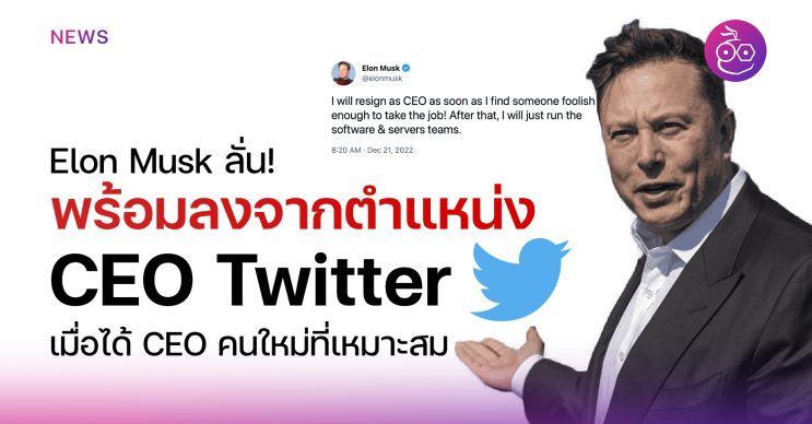 Elon Musk ลั่น! พร้อมลงจากตำแหน่ง CEO ของ Twitter เมื่อได้ CEO คนใหม่ที่เหมาะสม