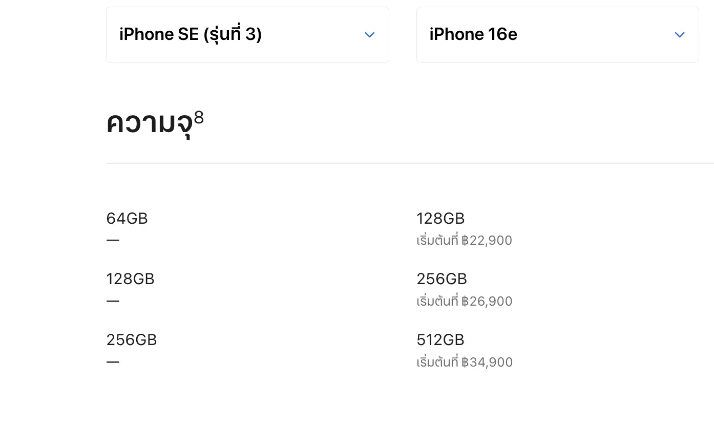 iPhone SE รุ่นที่ 3 ถูกแทนที่ด้วย iPhone 16e ส่วน iPad รุ่นที่ 10 ก็ถูกแทนที่ด้วย iPad รุ่นชิป A16 ซึ่งทั้ง 2 รุ่นนี้มีความจุเริ่มต้นที่ 128GB