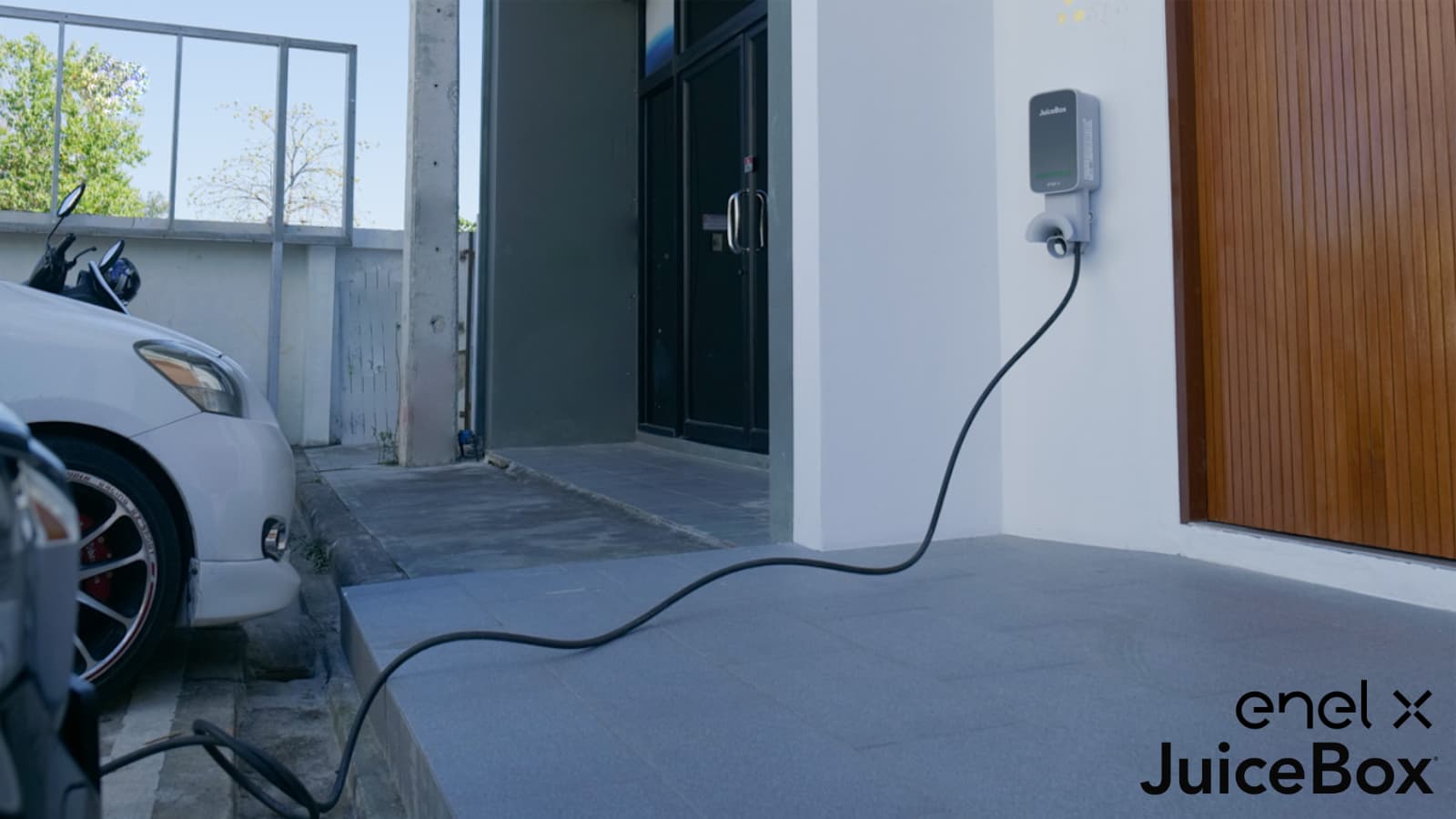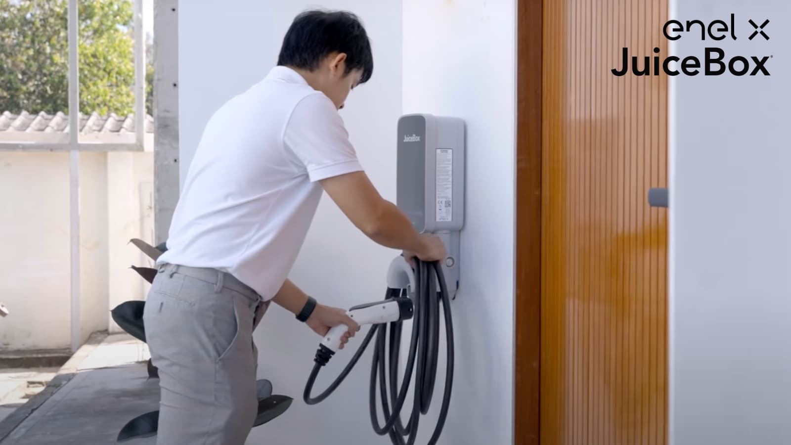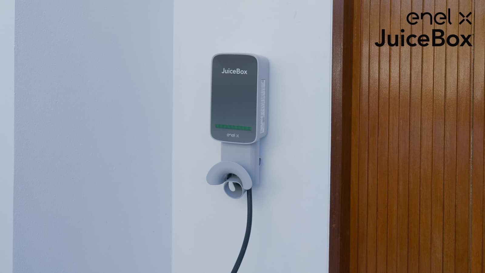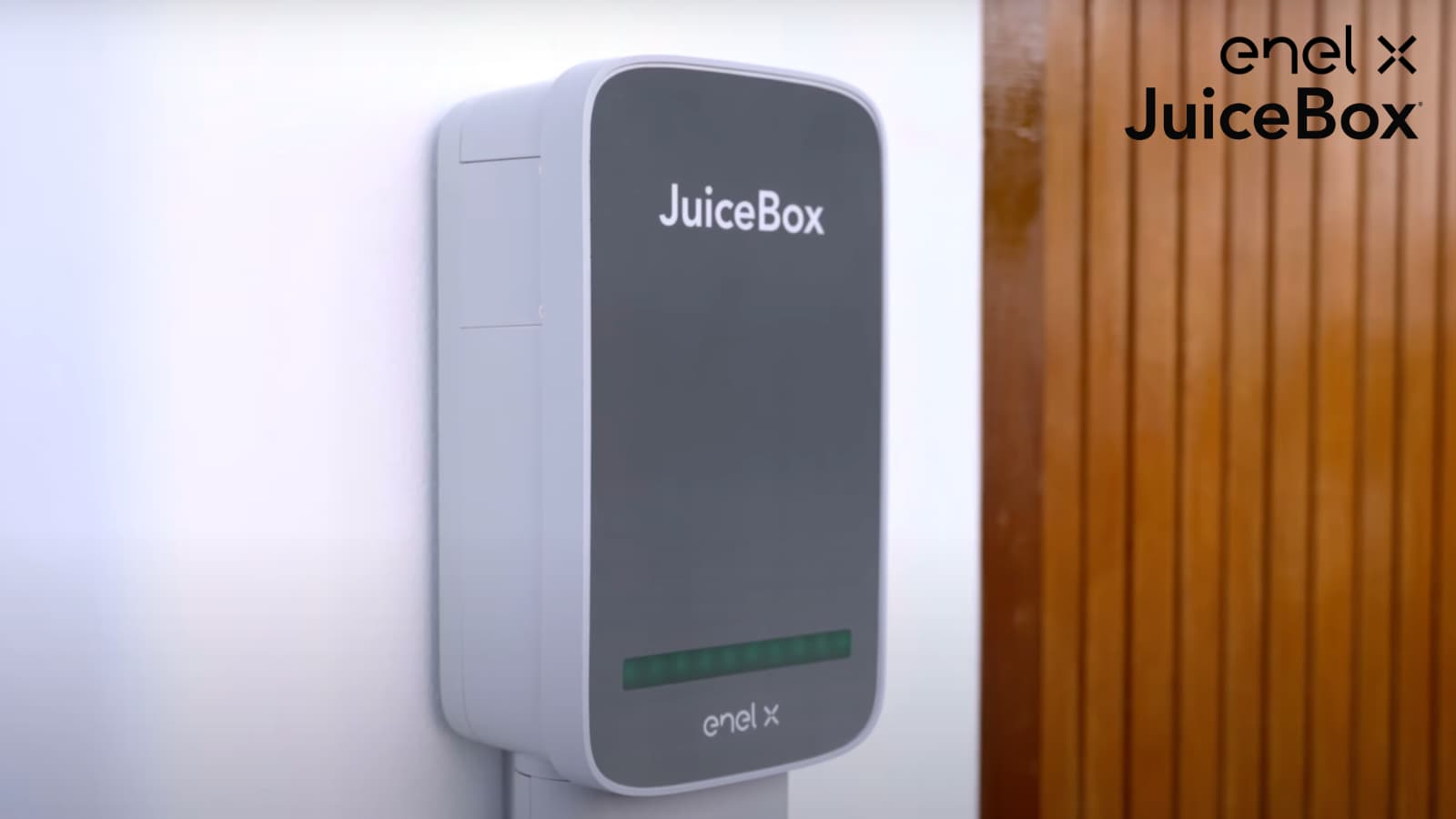 Enel X รุ่น JuiceBox ถูกออกแบบมาในสไตล์มินิมอลแต่ในขณะเดียวกันก็ดูทันสมัย ตัวกล่องชาร์จมีที่เก็บสายชาร์จในตัว เมื่อทำการชาร์จเสร็จก็สามารถม้วนสายเพื่อเก็บไว้ที่ด้านล่างตัวเครื่องได้เลย