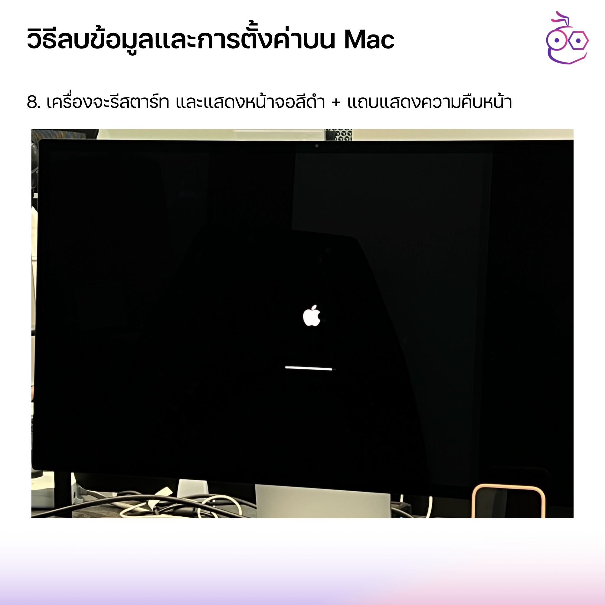 7. เครื่อง Mac ที่เราทำการลบจะรีสตาร์ทและแสดงหน้าจอสีดำหรือแถบแสดงความคืบหน้า