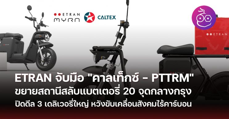 ETRAN จับมือ คาลเท็กซ์ – PTTRM ขยายสถานีสลับแบตเตอรี่ 20 จุดกลางกรุง พร้อมปิดดีล 3 เดลิเวอรี่ใหญ่ ใช้ ETRAN MYRA ช่วยขับเคลื่อนสังคมไร้คาร์บอน