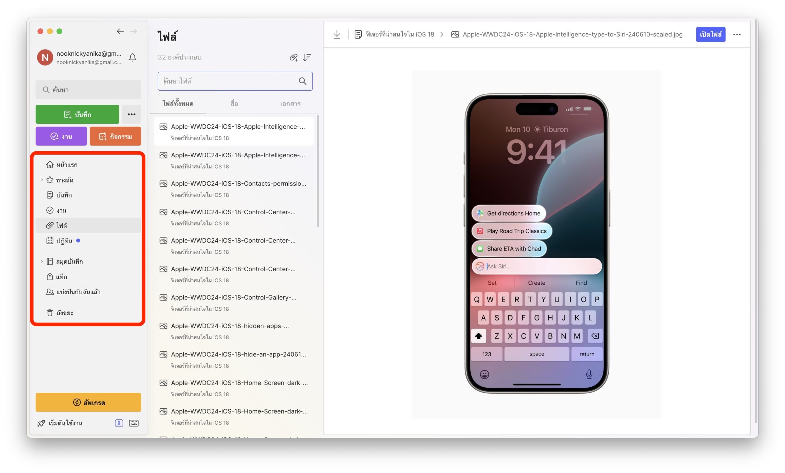 ตัวอย่างการใช้งาน Evernote บน Mac
