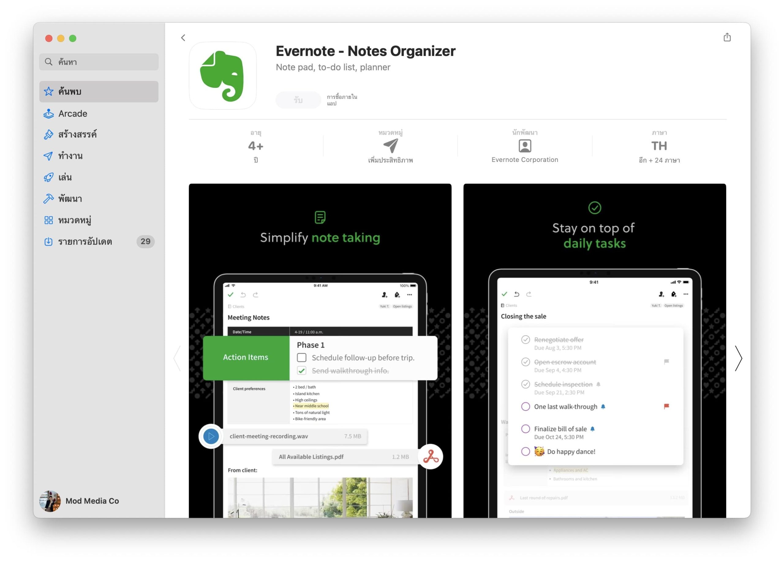 ดาวน์โหลด Evernote: https://apps.apple.com/th/app/evernote-notes-organizer/id281796108?l=th
