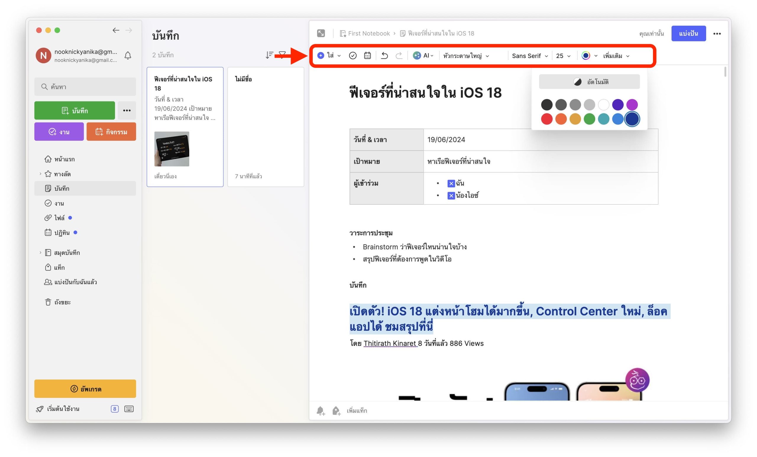 - Tagging: เพิ่มประสิทธิภาพในการจัดระเบียบโน้ตด้วยการใส่ Tag หรือป้ายกำกับ ทำให้การค้นหาและจัดกลุ่มโน้ตเป็นเรื่องง่ายดาย