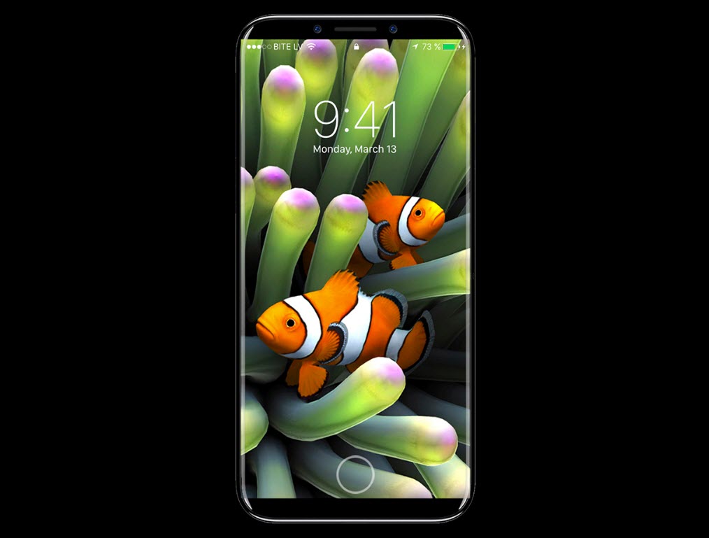 สำหรับด้านหน้าตัวเครื่องนั้นแหล่งข่าวเผยว่าจะใช้เป็นจอ OLED เต็มขอบแบบ 2.5D แต่จะไม่โค้งลงชิดขอบเหมือนข่าวลือก่อนหน้านี้ และด้านหน้าตัวเครื่องจะมี ระบบสแกนนิ้วที่หน้าจอ (Touch ID) ซึ่งน่าจะเป็นระบบที่ Apple พัฒนาและทดสอบเองซึ่งยังไม่ชัดเจนว่า Apple จะใช้เทคโนโลยีนี้หรือไม่