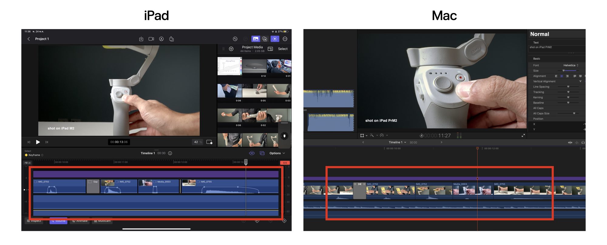 หลังจากที่ส่งออกไฟล์โปรเจกต์จาก iPad มาบน Mac แล้วก็สามารถแก้ไขงานต่อได้เลย ไม่ว่าจะเป็นการปรับสี ตัดต่อฟุตเทจ เลเยอร์เสียง รวมถึงฟีเจอร์ต่าง ๆ ที่ใช้งานบน iPad ก็นำมาทำต่อบน Mac ได้เลย ยกเว้นการคีย์เฟรมบน iPad จะสามารถแก้ไขบน Mac ต่อได้