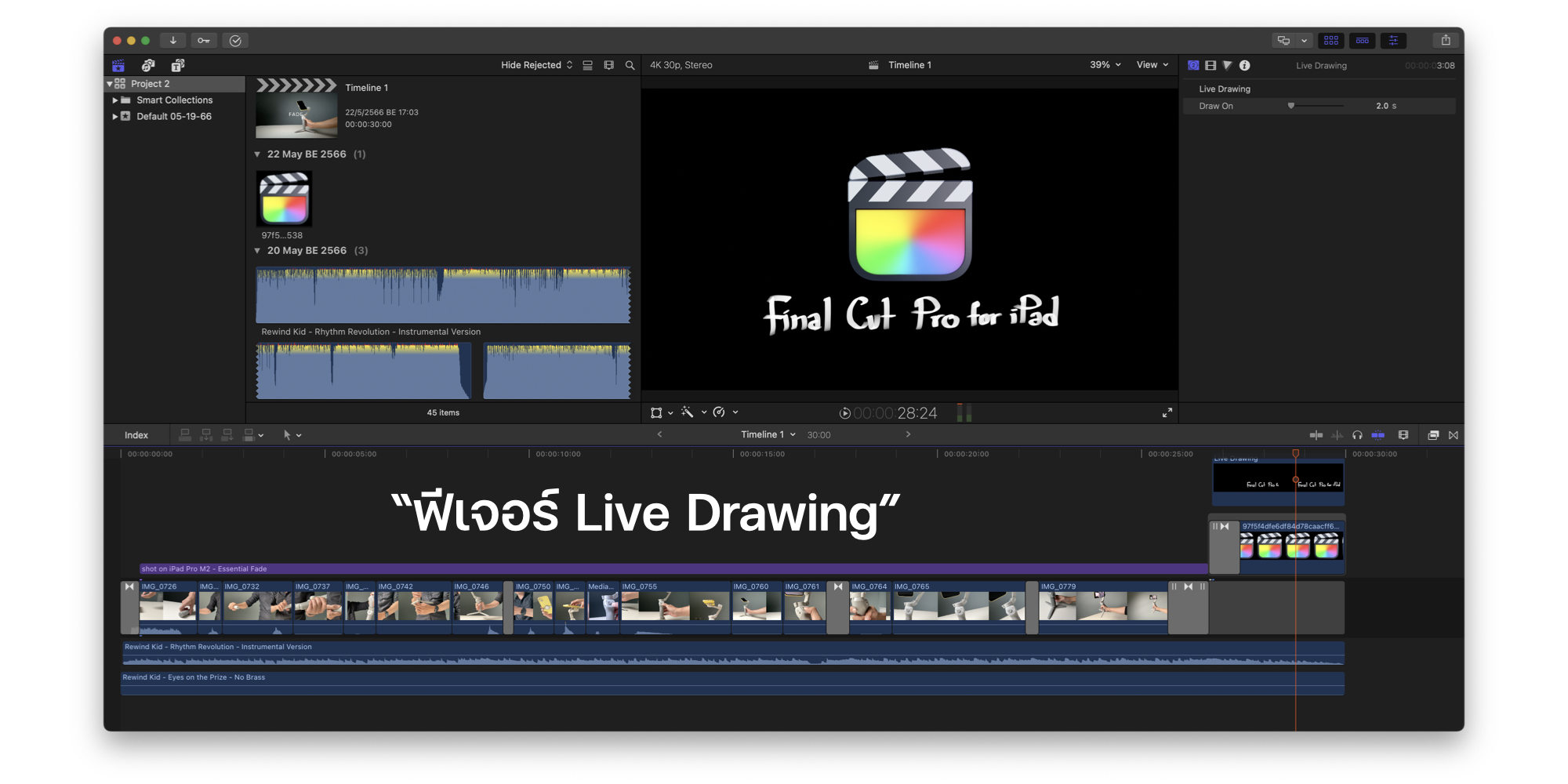และมีอีกหนึ่งฟีเจอร์หนึ่งที่ว้าวมากในเวอร์ชัน iPad ก็คือ ฟีเจอร์ Live Drawing ที่เราสามารถใช้ Apple Pencil เขียนลงไปบนวิดีโอแล้วจะเปลี่ยนเป็นภาพอนิเมชันให้เลย แต่ฟีเจอร์นี้จะไม่สามารถแก้ไขตัวหนังสือในฟุตเทจบน Mac ได้นั่นเอง