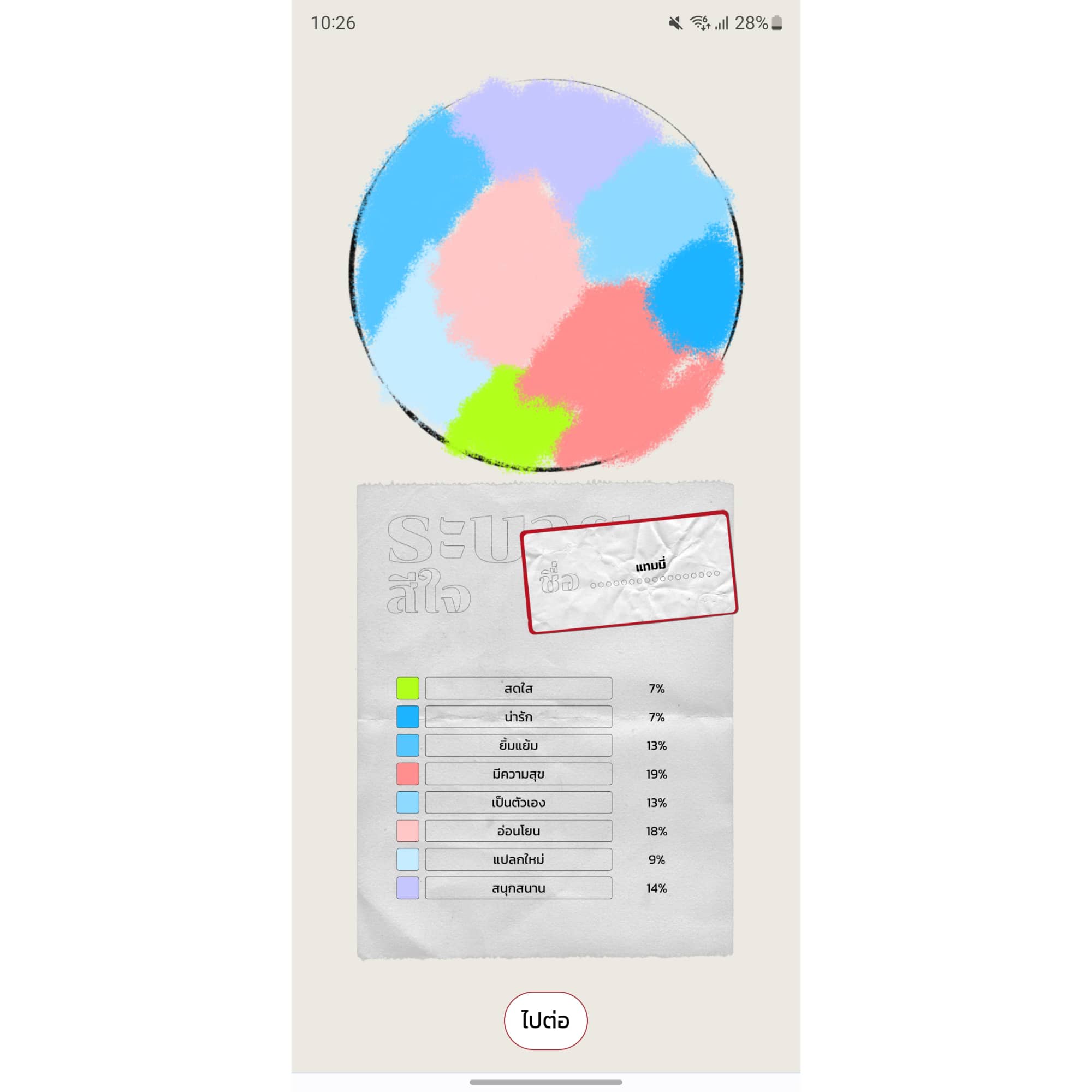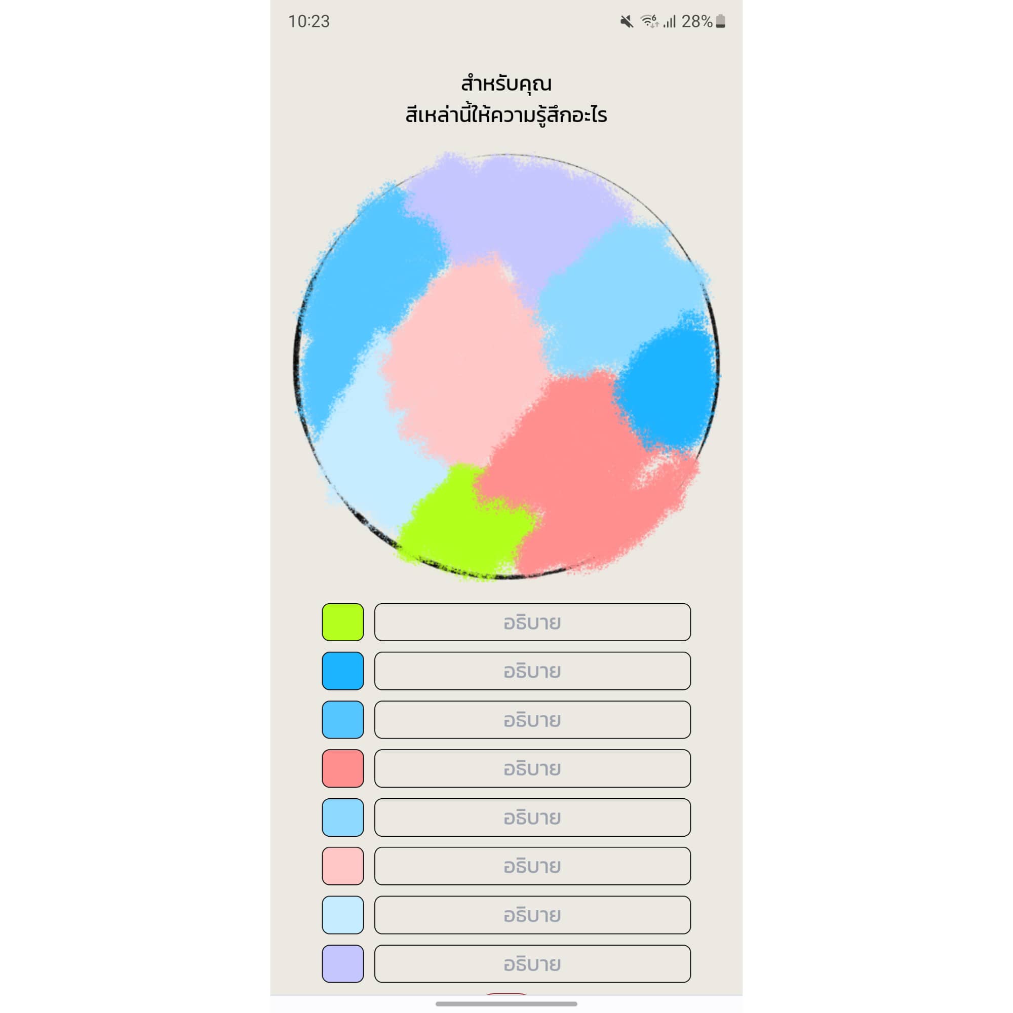พอระบายสีเสร็จแล้วตัวเว็บจะให้เราอธิบายว่าแต่ละสีให้ความรู้สึกยังไงกับเราบ้าง