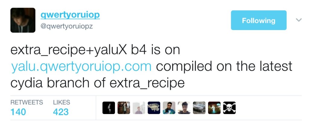 Luca Todesco ได้ปล่อยอัปเดต Extra Recipe + YaluX Jailbreak Beta 4 ให้ผู้ใช้สาย Jailbreak ได้อัปเดตกัน โดยผู้ใช้ iPhone 7 / 7 Plus ที่ใช้  iOS 10.0.X ถึง 10.1.1 สามารถอัปเดตและติดตั้งตัว Jailbreak ดังกล่าวได้