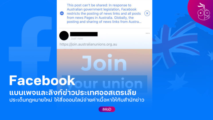 Facebook แบนสำนักข่าวออสเตรเลีย ห้ามไม่ให้โพสต์หรือแชร์ข่าว เนื่องจากกฎหมายการจ่ายค่าเนื้อหาให้สำนักข่าว