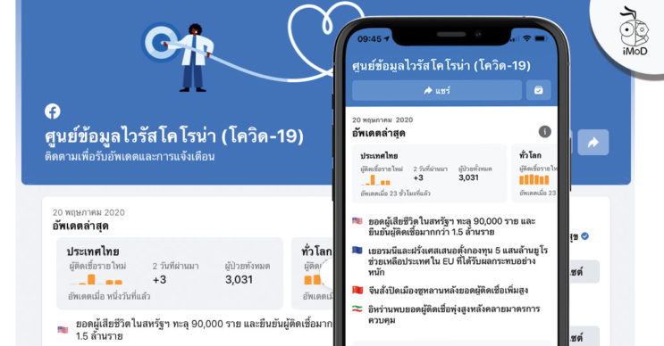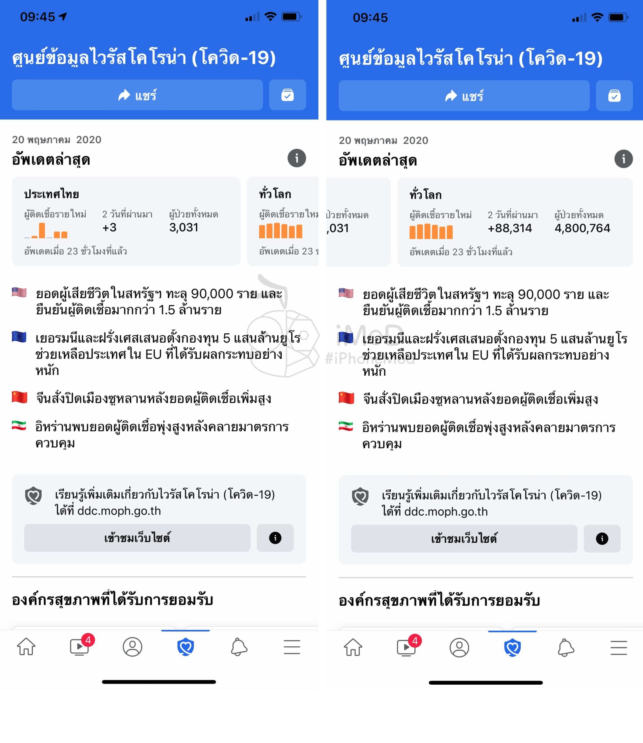 เมื่อเข้าไปที่เมนูศูนย์ข้อมูลโควิด-19 ทั้งบนเว็บ Facebook และในแอป Facebook ก็จะพบรายงานอัปเดตตัวเลขผู้ติดเชื้อเพิ่มเข้ามา