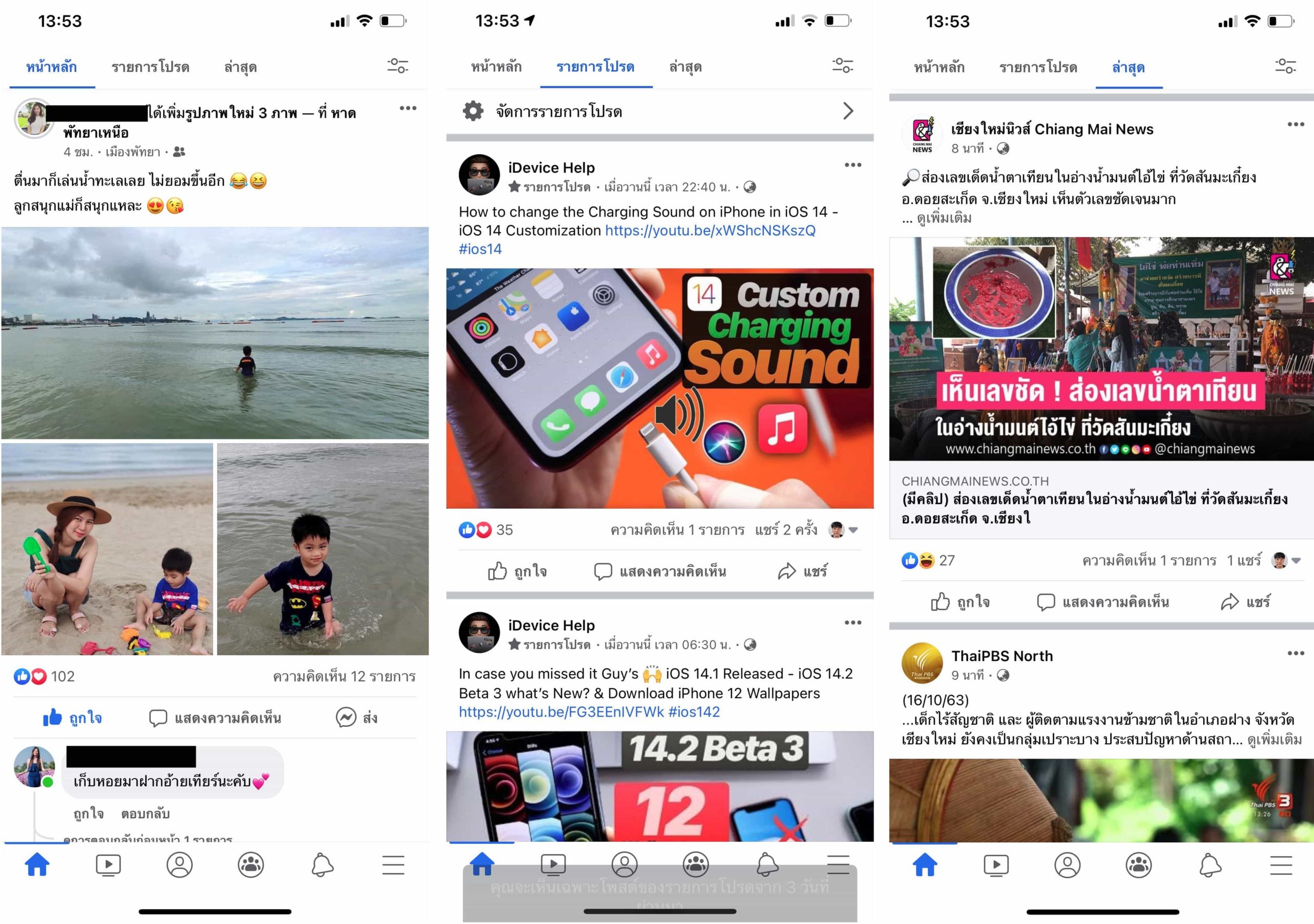 ล่าสุดแอป Facebook อัปเดตใหม่มาพร้อมตัวกรองโพสต์ในหน้าฟีดโดยเป็นมี 3 ตัวเลือกดังนี้