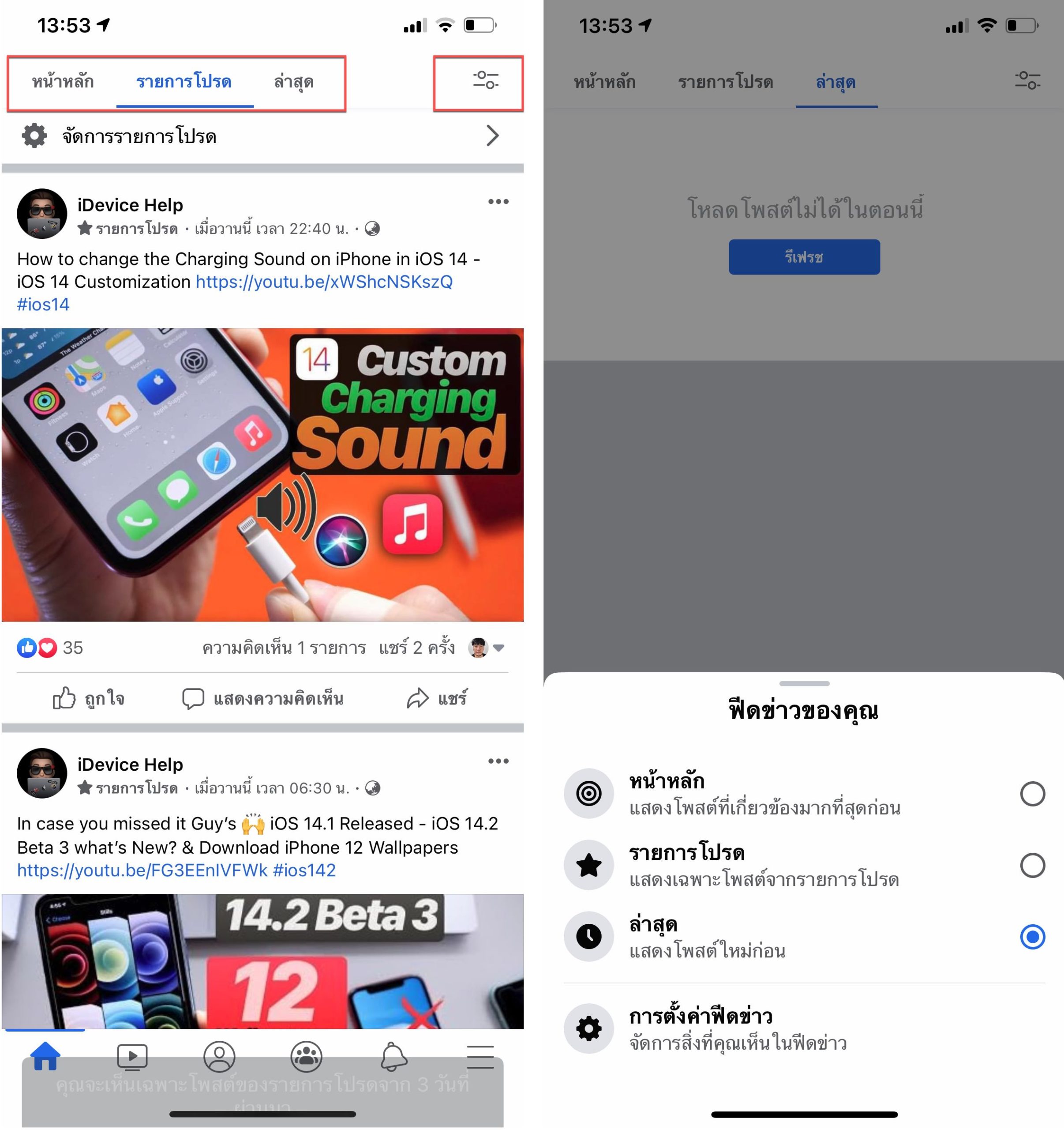 ข้อดีของฟีเจอร์นึ้ คือ เราสามารถเลือกดูโพสต์ในหน้าฟีดตามต้องการได้ ว่าจะดูตามโพสต์ยอดนิยมหรือดูโพสต์ล่าสุด ซึ่งแตะเปลี่ยนได้เลยที่หน้าฟีต