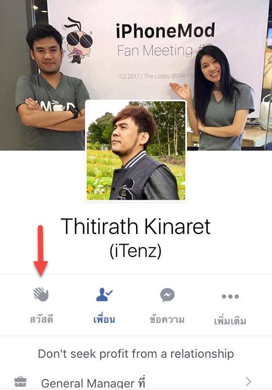 แอป Facebook มีอัปเดตเล็กๆ เอาไว้สะกิดคนอื่นโดยการ เพิ่มปุ่ม Hello ไว้ที่หน้า Profile ให้เพื่อนคนอื่นสามารถกดเพื่อทักทายเราได้