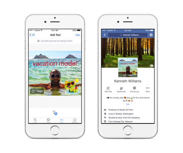 Facebook ได้เพิ่มคุณสมบัติใหม่เพื่อสดสอบในบางประเทศ เพื่อเปลี่ยนรูปโปรไฟล์เป็นภาพเคลื่อนไหว (แบบในเรื่อง Harry Potter) และนอกจากนี้ยังได้เพิ่มคุณสมบัติบางอย่าง เช่น การเปลี่ยนรูปโปรไฟล์เฉพาะกิจ, การเพิ่มรายละเอียดแนะนำตัวในแบบสั้น, ฯลฯ
