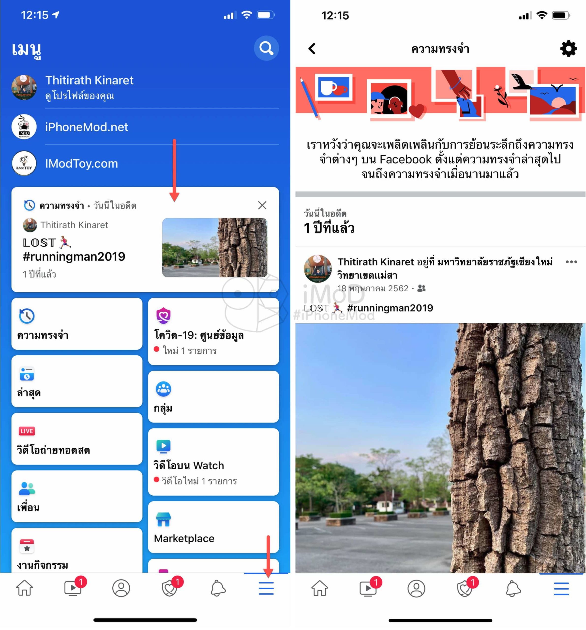 หากใครใช้แอป Facebook บน iPhone จะเห็นได้ว่าตัวแอปเริ่มแสดงตัวอย่างความทรงจำ-วันนี้ในอดีตที่แถบเมนู เพื่อกระตุ้นให้ผู้ใช้กดเข้าไปดู