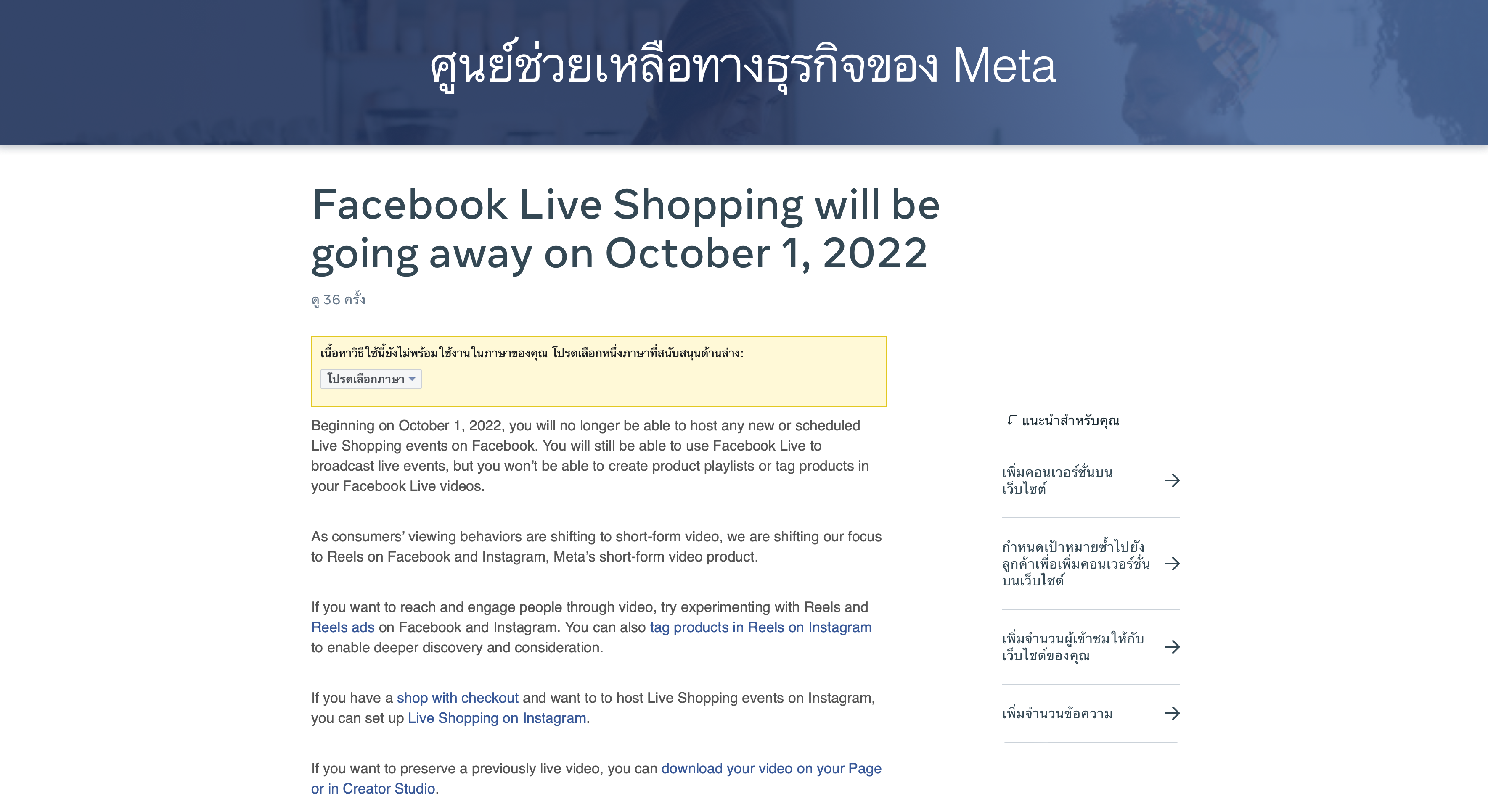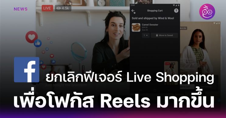 ล่าสุดการอัปเดตทิศทางในอนาคตของแพลตฟอร์มจากบริษัทแม่อย่าง Meta คือการที่ Facebook จะยกเลิกฟีเจอร์ Live Shopping ในวันที่ 1 ต.ค. เพื่อโฟกัส Reels มากขึ้น