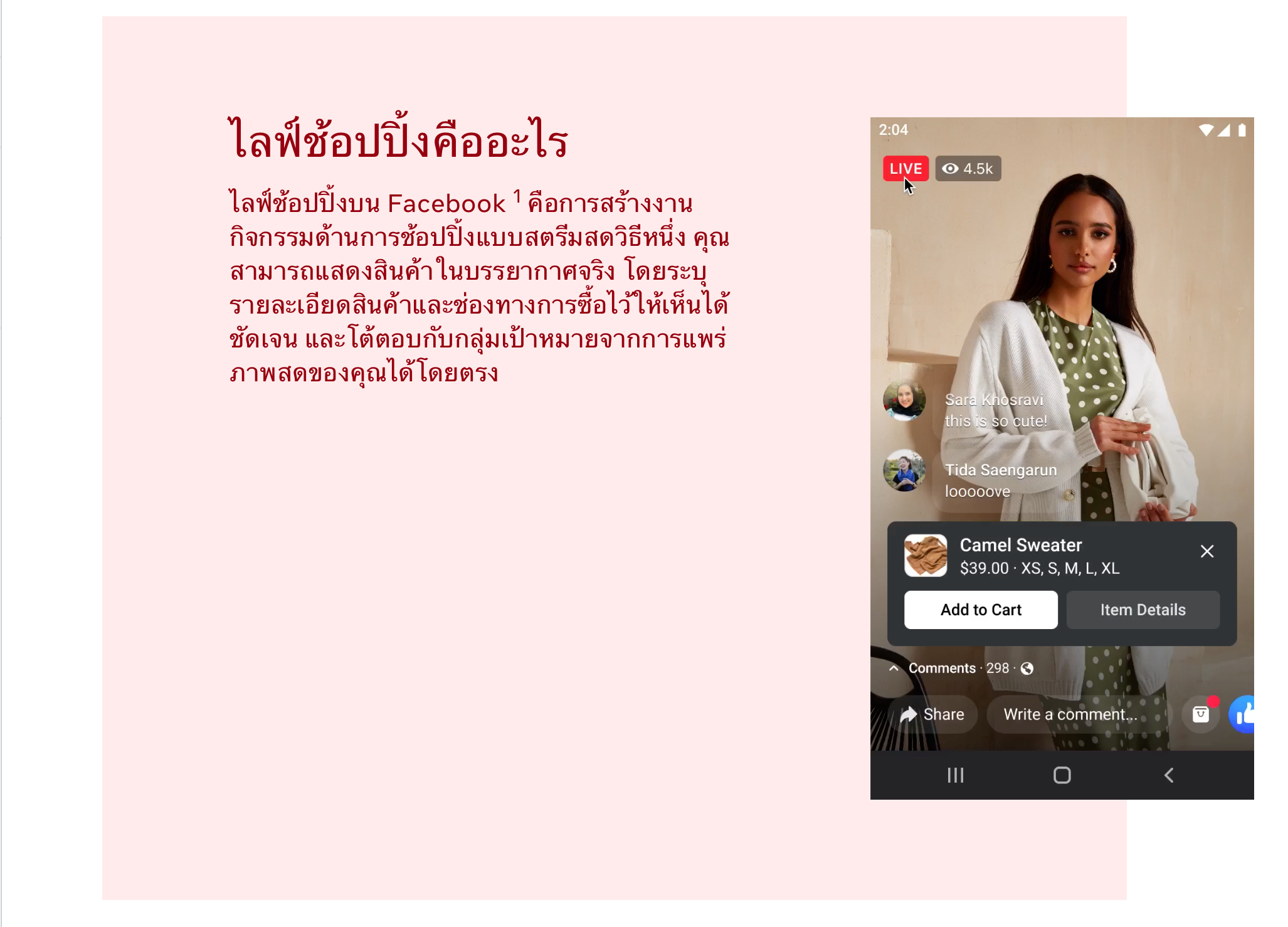 แต่ยังสามารถใช้งานการไลฟ์สดบน Facebook ได้เหมือนเดิม เพียงแค่จะไม่สามารถสร้างลิสต์ของสินค้า หรือ tag สินค้าในวีดีโอไลฟ์สดของ Facebook