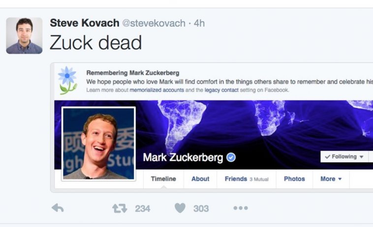 เกิดข้อผิดพลาดจากทาง Facebook ที่จู่ๆ ก็มีแบนเนอร์แจ้งเตือนกว่าเจ้าของโปรไฟล์นั้นเสียชีวิตไปแล้วทั้งๆ ที่คนเหล่านั้นยังสบายดี ไม่เว้นแม้กระทั่งท่านผู้นำอย่าง Mark Zuckerberg ก็โดนด้วย