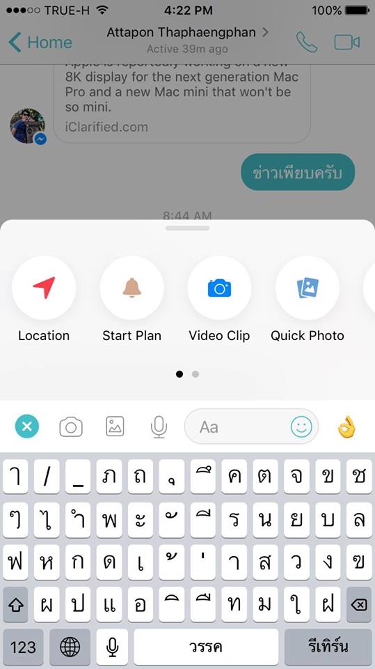 ปุ่มเพิ่มหรือแชร์ข้อมูล Location, Start Plan (กำหนดเวลาเพื่อแจ้งเตือน) , Video Clip, Quick Photo และอื่นๆ