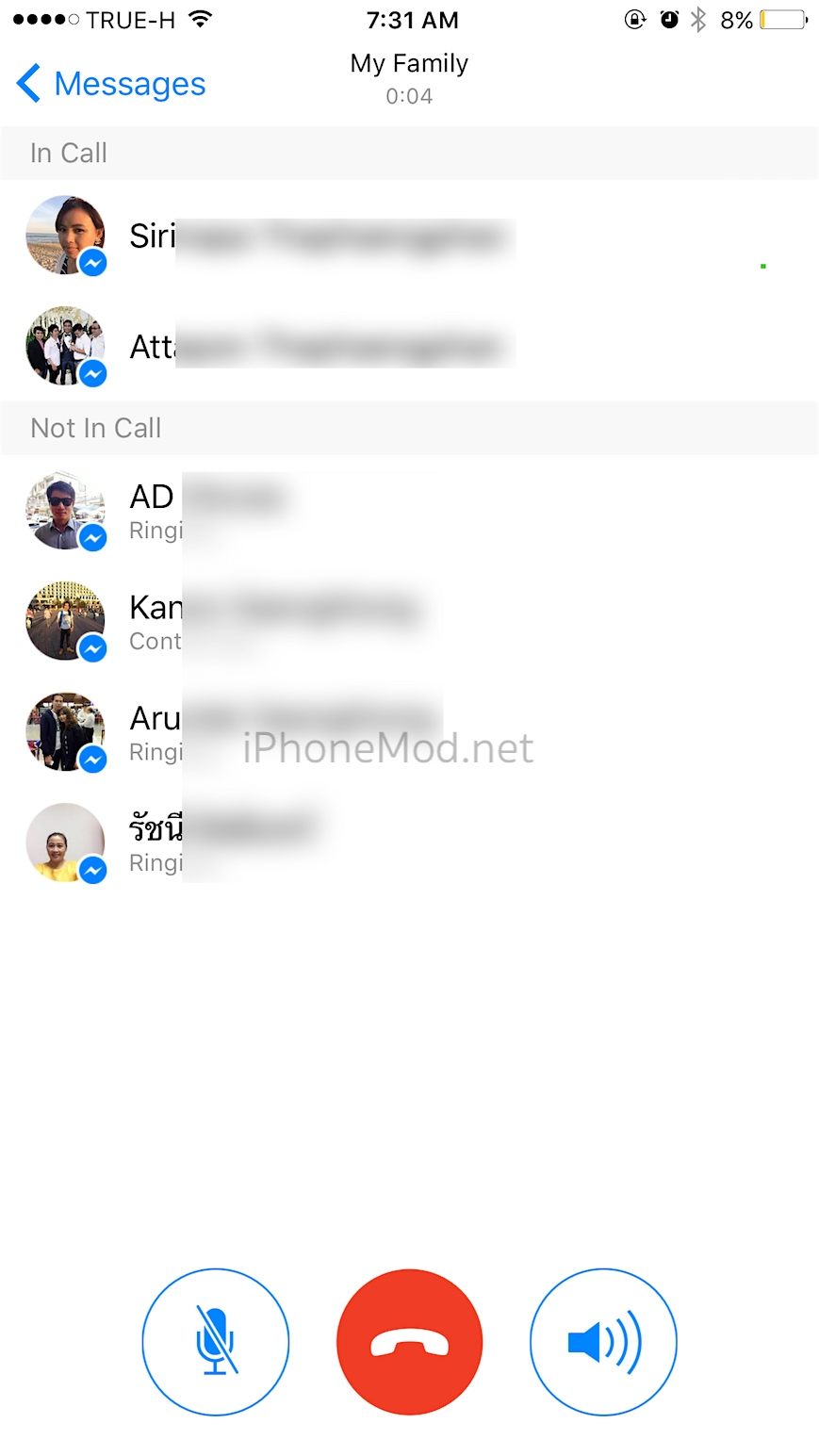 หากสมาชิกในกลุ่มคนไหนรับสายแล้วจะเข้ามาอยู่ใน In Call ส่วนที่ยังไม่รับสายก็จะขึ้นในกลุ่ม Not In Call เท่านี้ก็เริ่มคุยกันได้แล้ว