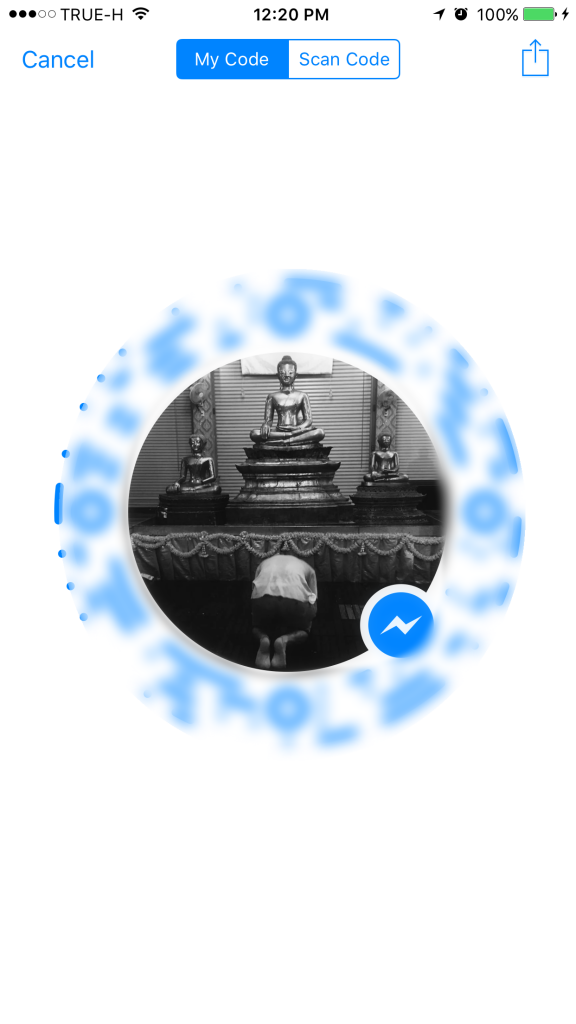 นอกจากนี้เมื่อไม่กี่วันที่ผ่านมาทาง Facebook ก็ได้อัปเดตแอป Messenger ด้วยการเพิ่มให้มี Code (ลักษณธคล้ายๆ QR Code) เพื่อความง่ายในการเพิ่มเพื่อนได้อีกหนึ่งช่องทาง