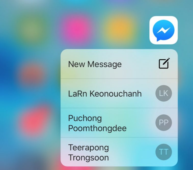 เพิ่มเติมอีก 1 จุดคือ รองรับ Quick Menu สำหรับ iPhone 6s, 6s Plus สามารถใช้งานได้โดยกดที่ไอคอน Messenger เพื่อเรียกเมนูดังกล่าวออกมา