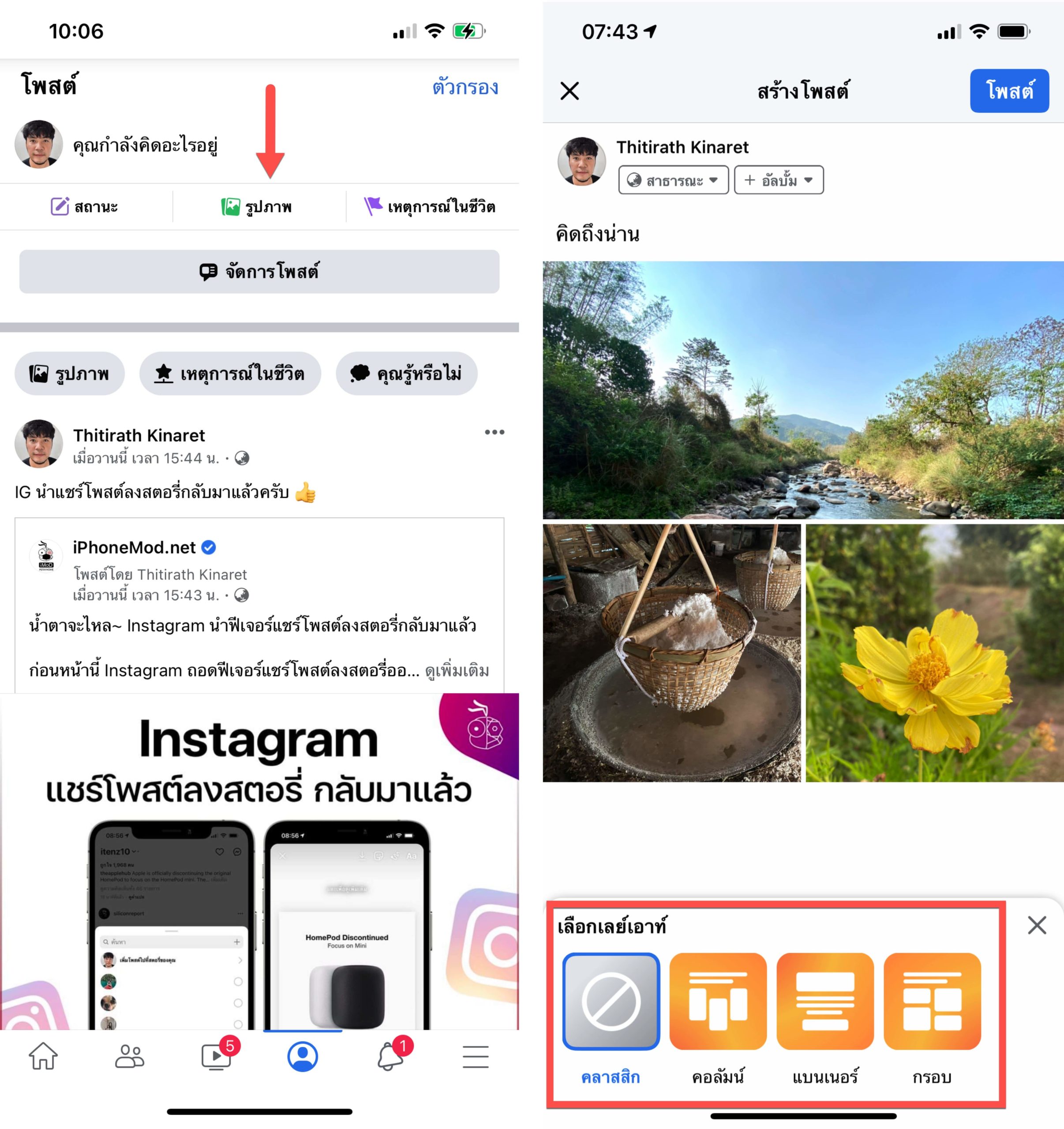 ฟีเจอร์เลย์เอาท์ใช้งานได้ทั้งบน iOS, iPadOS อัปเดตแอป Facebook ให้เป็นเวอร์ชันล่าสุดและใช้งานกันได้เลย!!