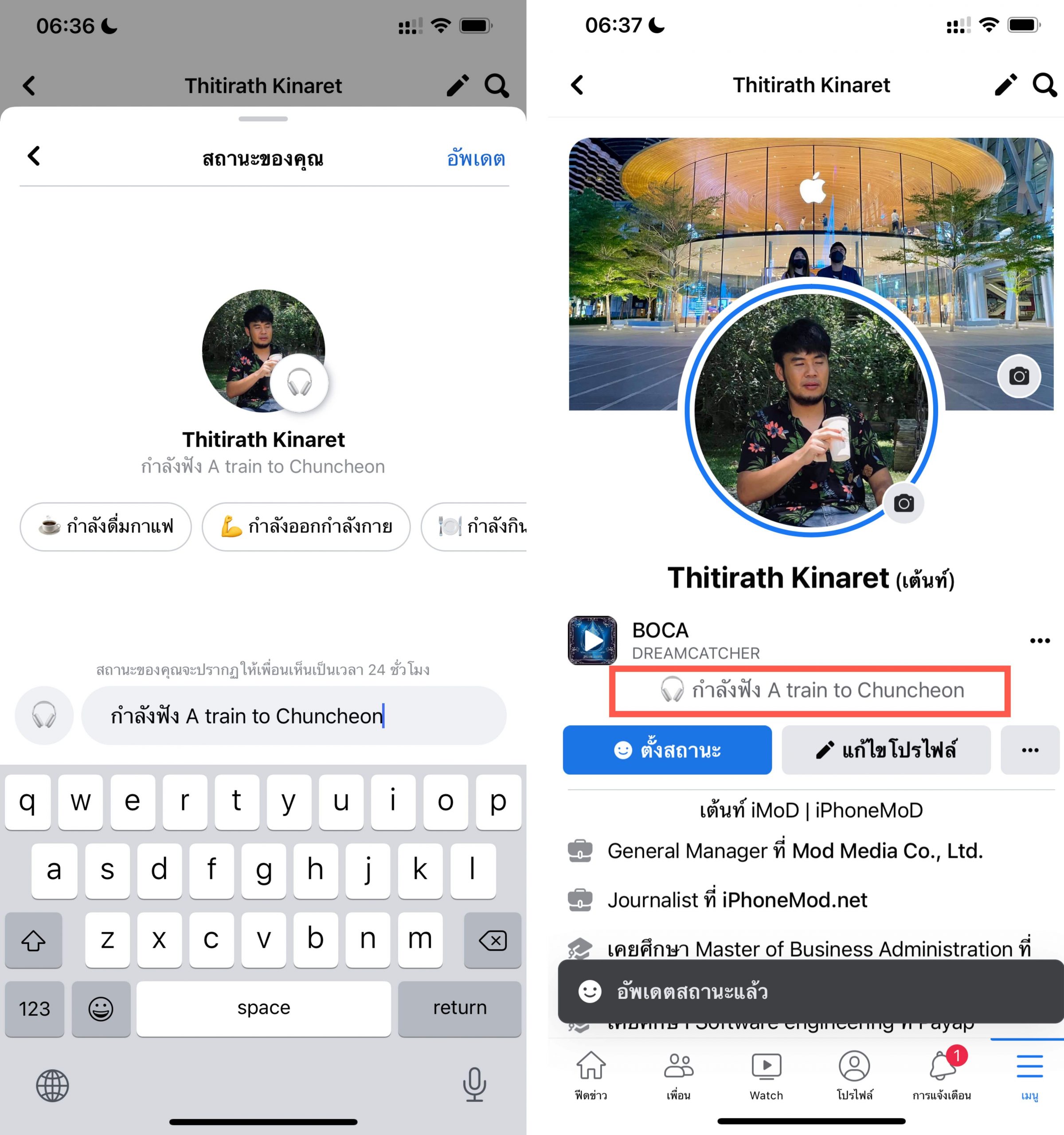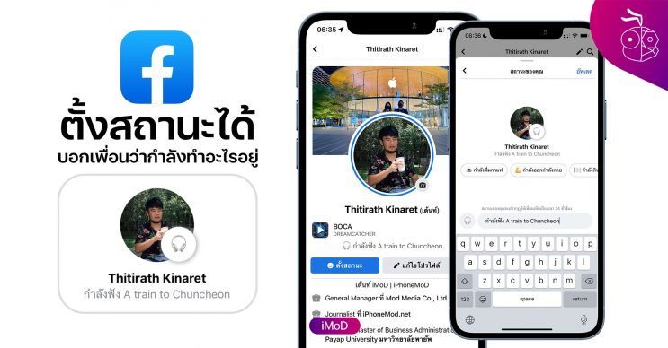 Facebook บน iOS ปล่อยฟีเจอร์ใหม่ รองรับการตั้งสถานะเพื่อบอกให้ผู้อื่นทราบว่าตอนนี้เรากำลังทำอะไรอยู่ โดยจะมีไอคอนติดที่รูปโปรไฟล์ด้วย