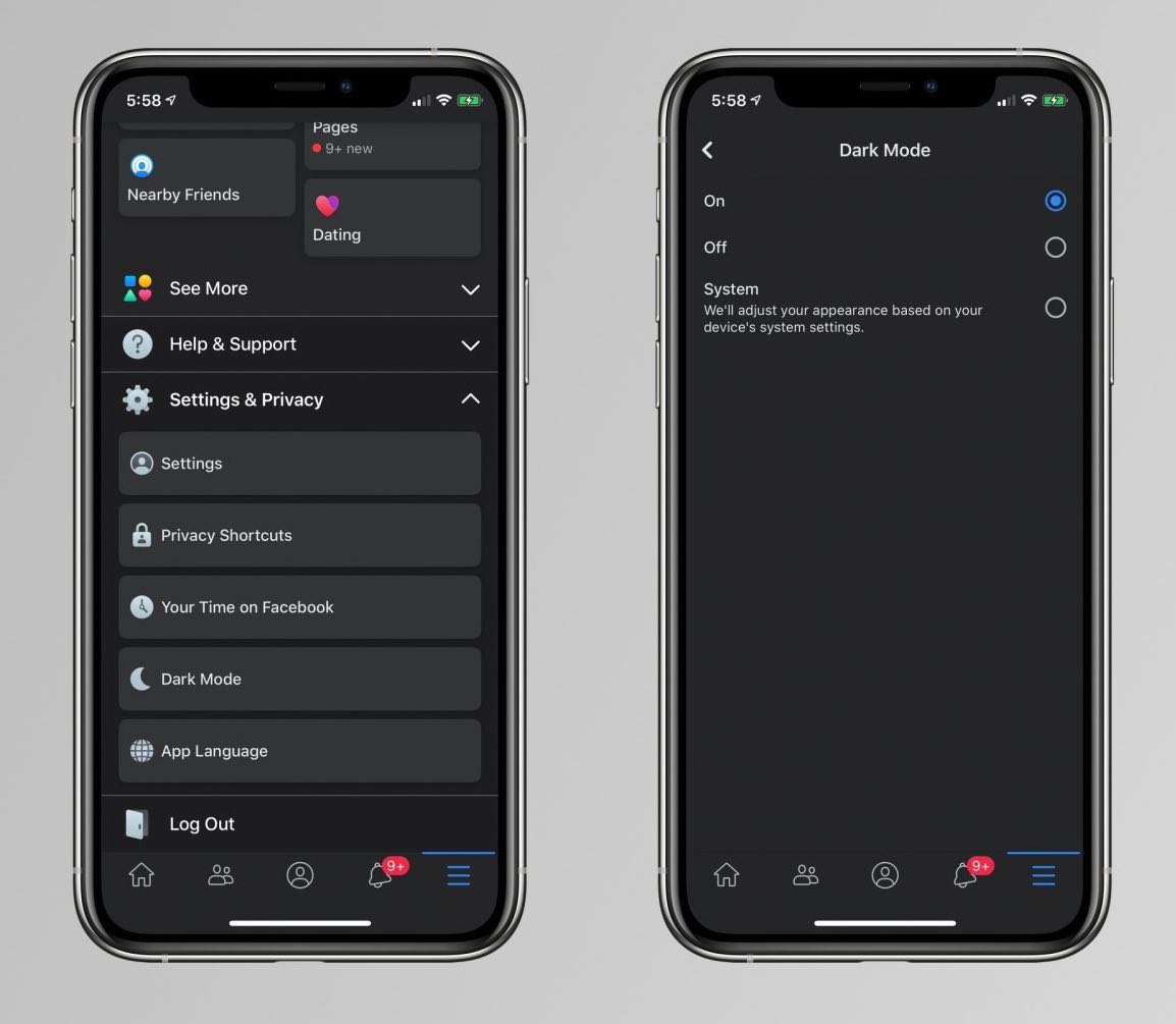 9to5Mac รายงานข้อมูลว่าผู้ใช้ iOS สามารถใช้ Dark Mode บนแอป Facebook แล้ว โดยสามารถเปิด Dark Mode ได้ที่เมนู “Settings and Privacy”