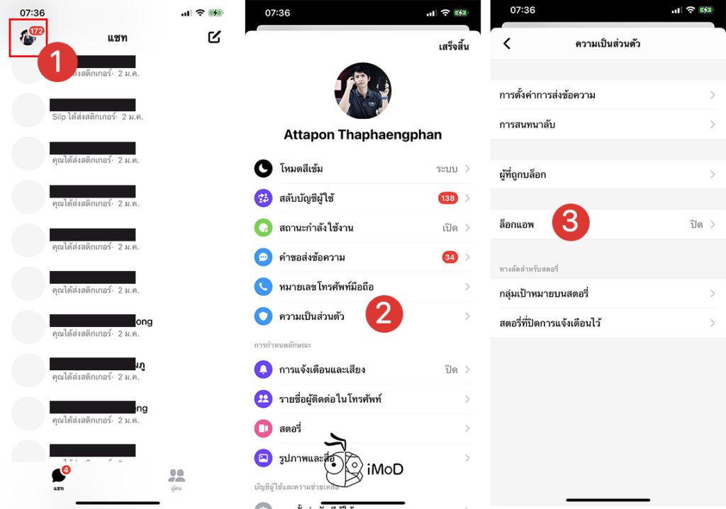 แตะเปิด ต้องใช้ Face ID > อนุญาตการใช้งาน Face ID > ตั้งค่าระยะเวลาที่เราออกจากแอปแล้วต้องยืนยันตัวตนด้วย Face ID