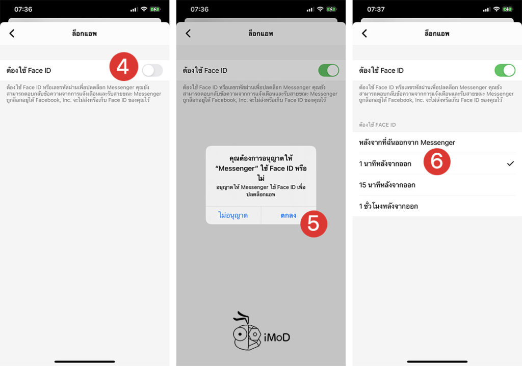 เมื่อเปิดใช้งานการล็อคแอปแล้ว เวลาที่เข้าแอป Messenger ผู้ใช้จะต้องทำการสแกนใบหน้า Face ID ก่อนเข้าแอปเสมอ หรือสแกนตามระยะเวลาที่ออกจากแอปที่เราตั้งค่าไว้
