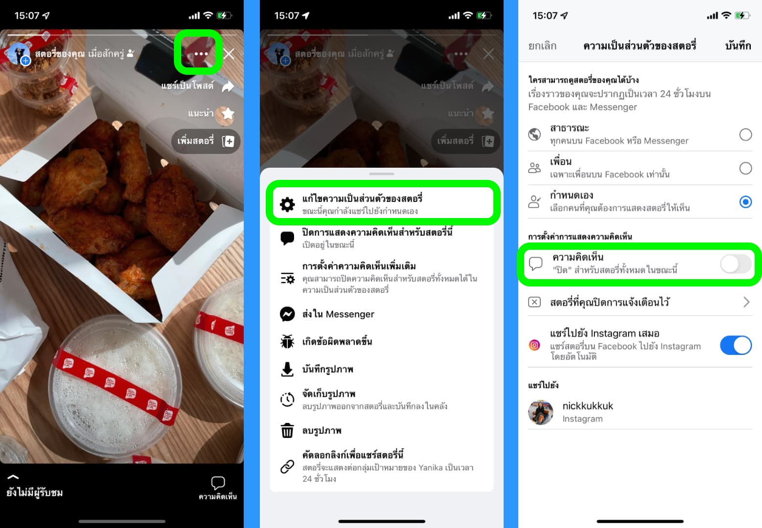 ส่วนใครที่อยากปิดการแสดงความคิดเห็นในสตอรี่ ทำได้ดังนี้