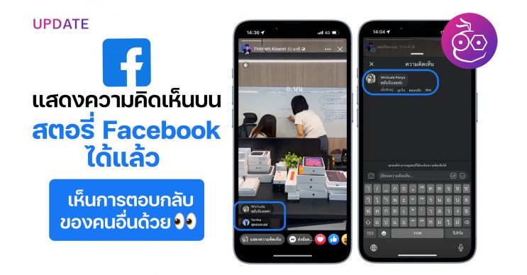 แอป Facebook เพิ่มฟีเจอร์การแสดงความคิดเห็นในสตอรี่ Facbook นอกจากเจ้าของจะอ่านการตอบกลับได้แล้ว เพื่อนใน Facebook ก็อ่านการตอบกลับของคนอื่น ๆ ได้ด้วย